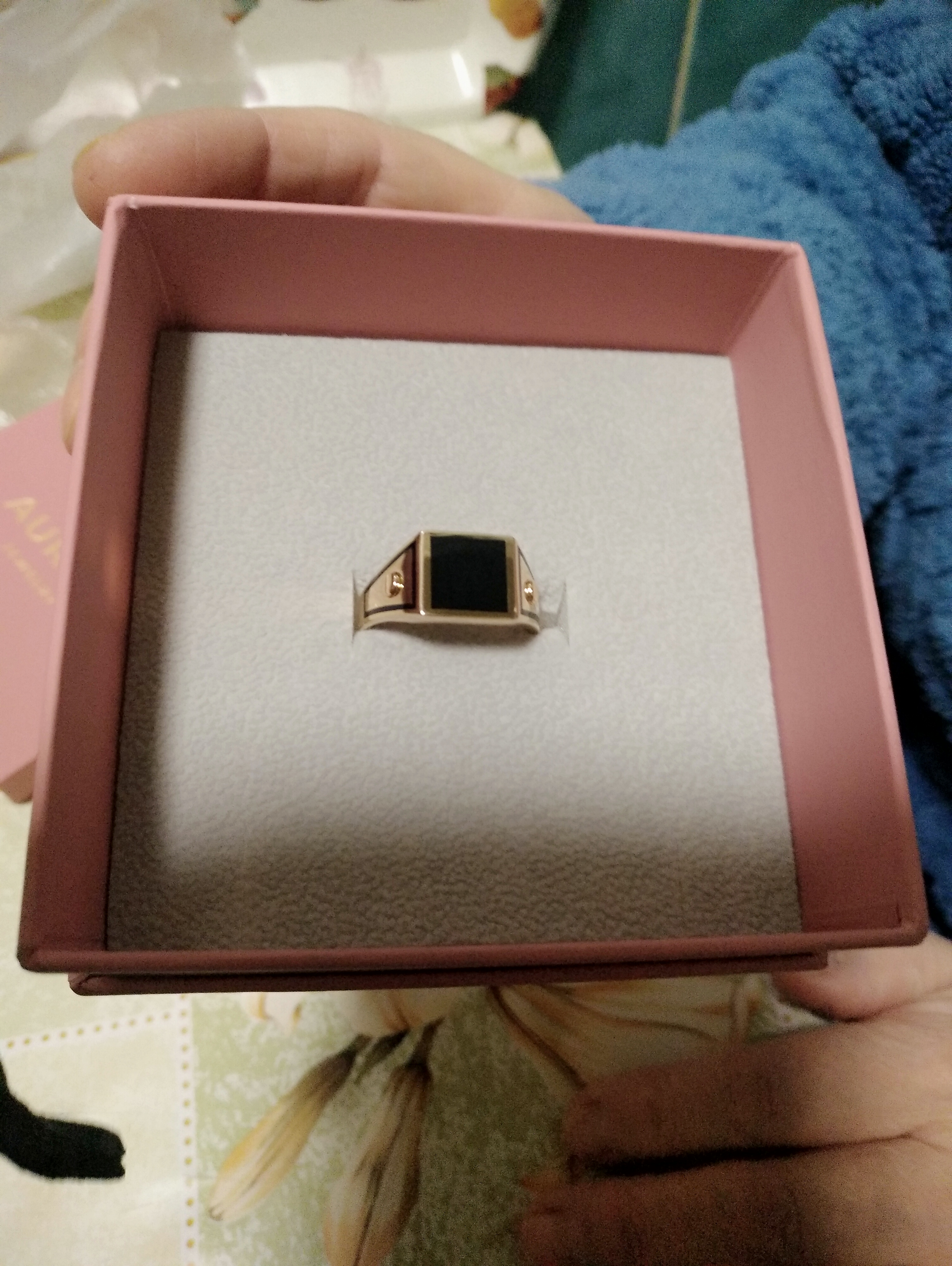 Перстень-печатка из красного золота с эмалью и дорожками из черных фианитов - 1874654