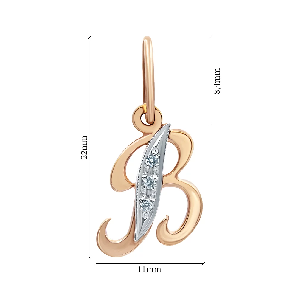 Золотой подвес "Буква В" с фианитом - 421258