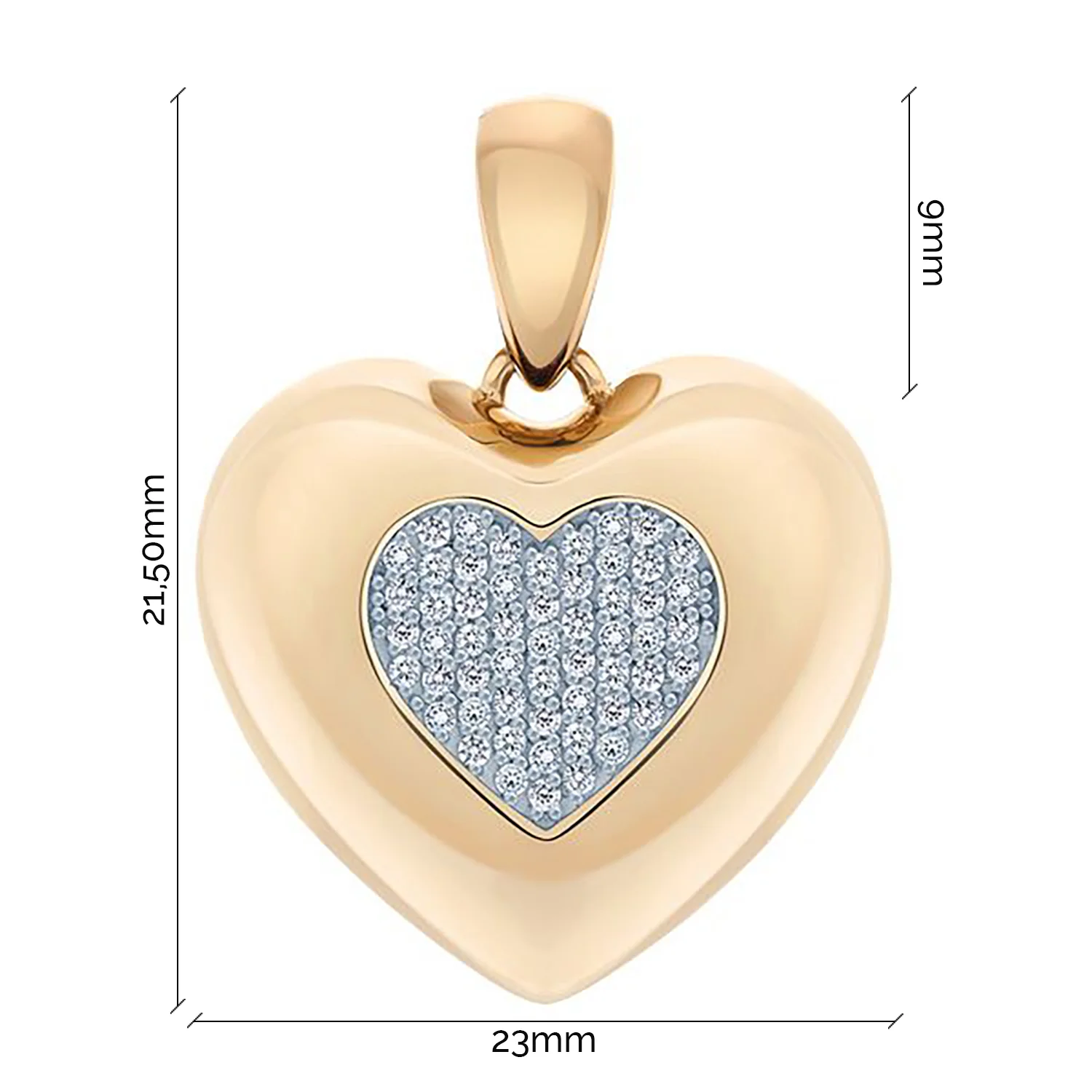 Подвес в виде "Сердца" с фианитами в красном золоте - 452048