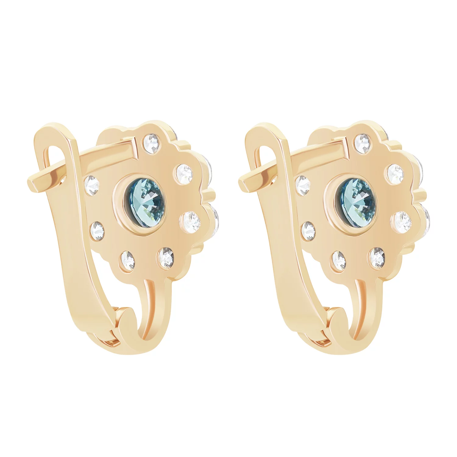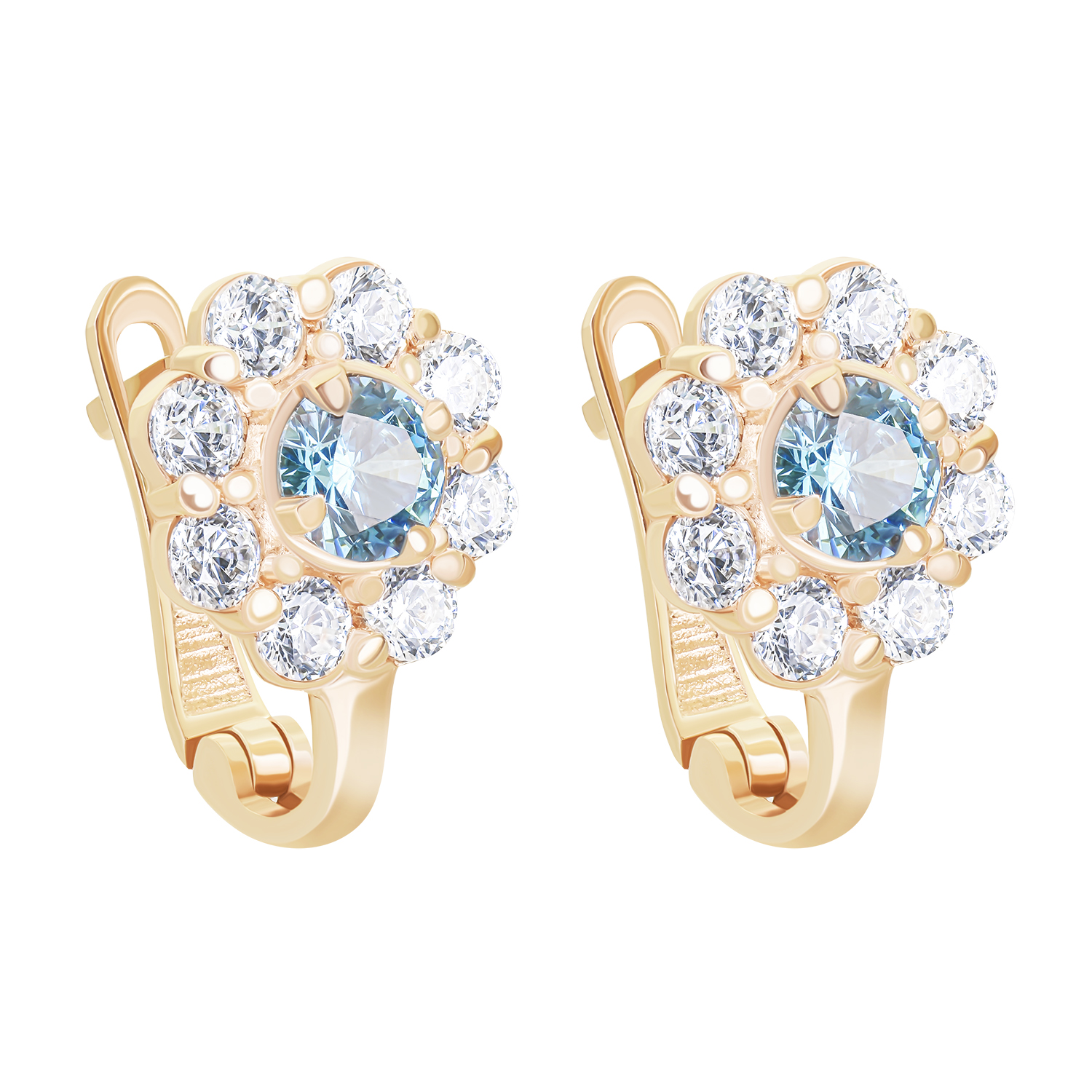 Детские серьги "Цветок" с фианитами в красном золоте - 1602587