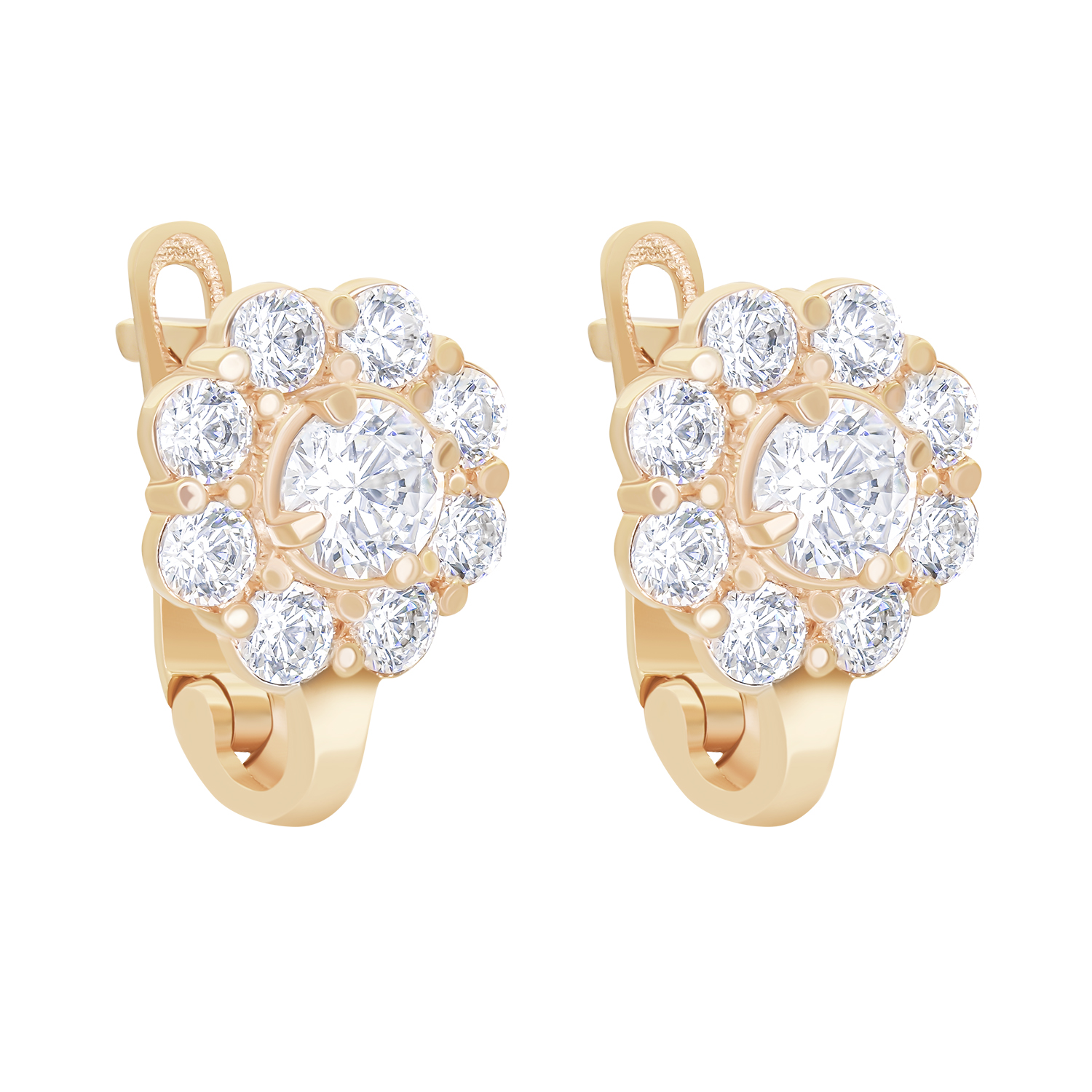 Золотые детские серьги "Цветок" с фианитами - 1627907