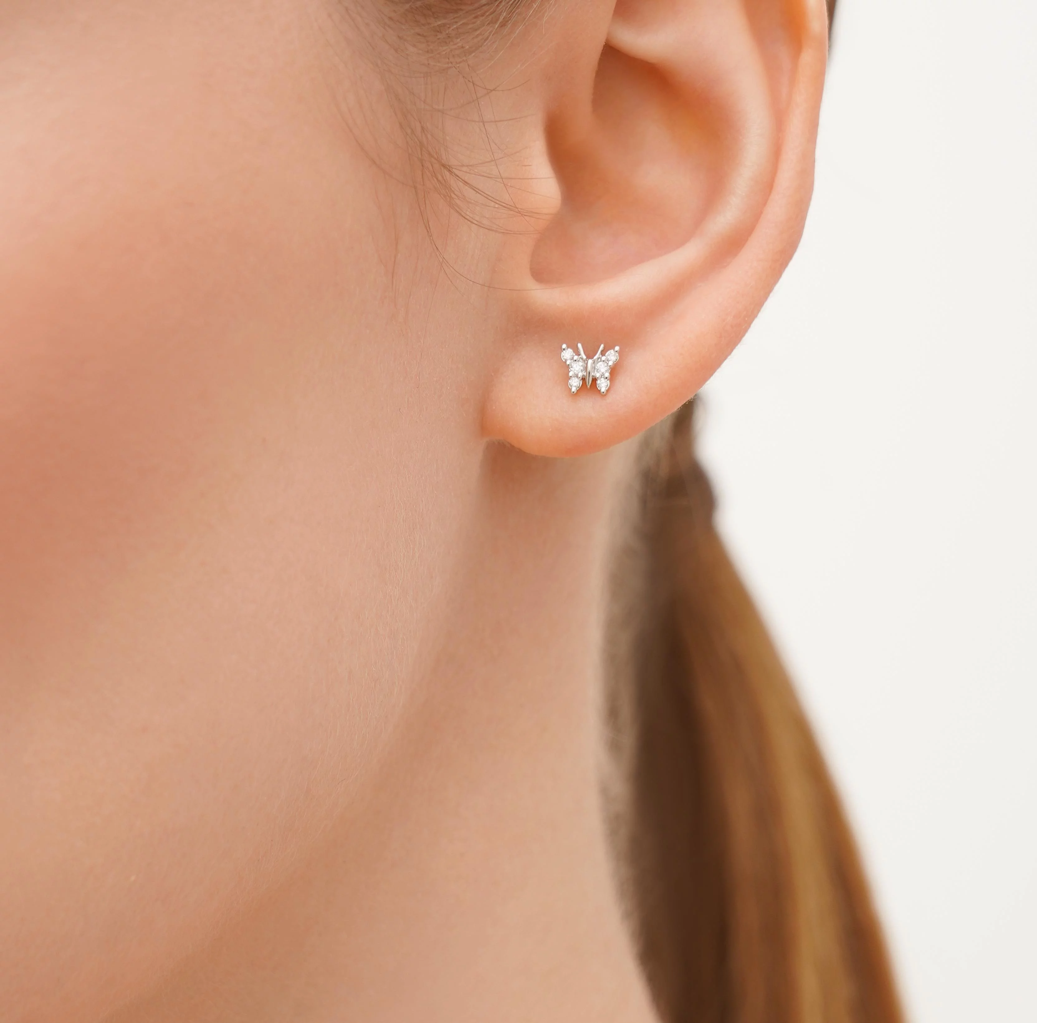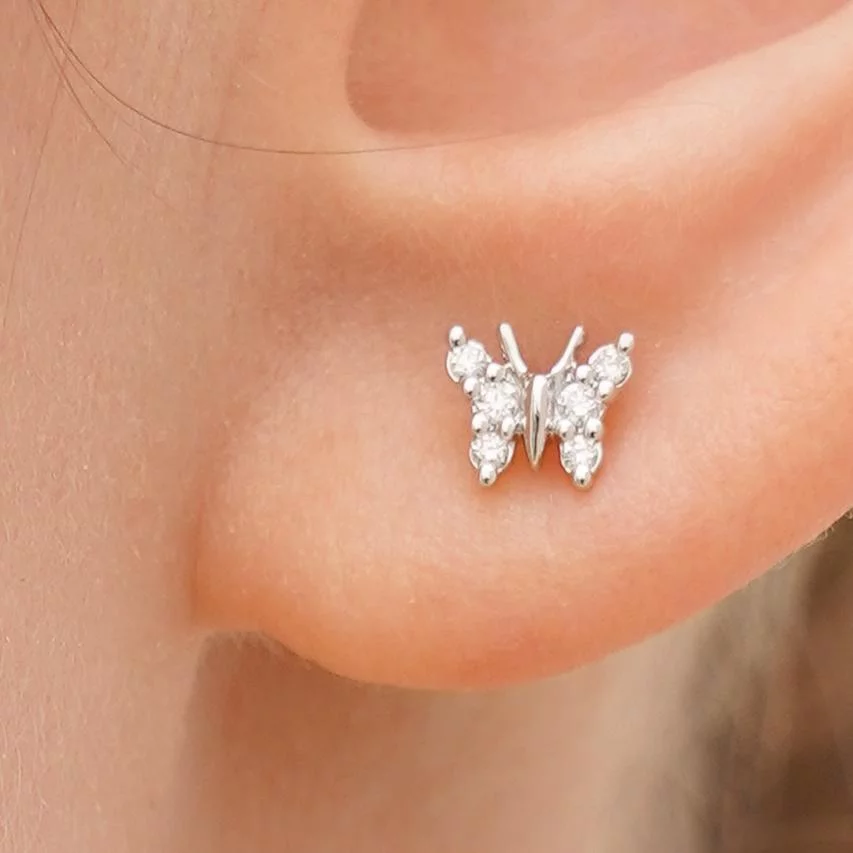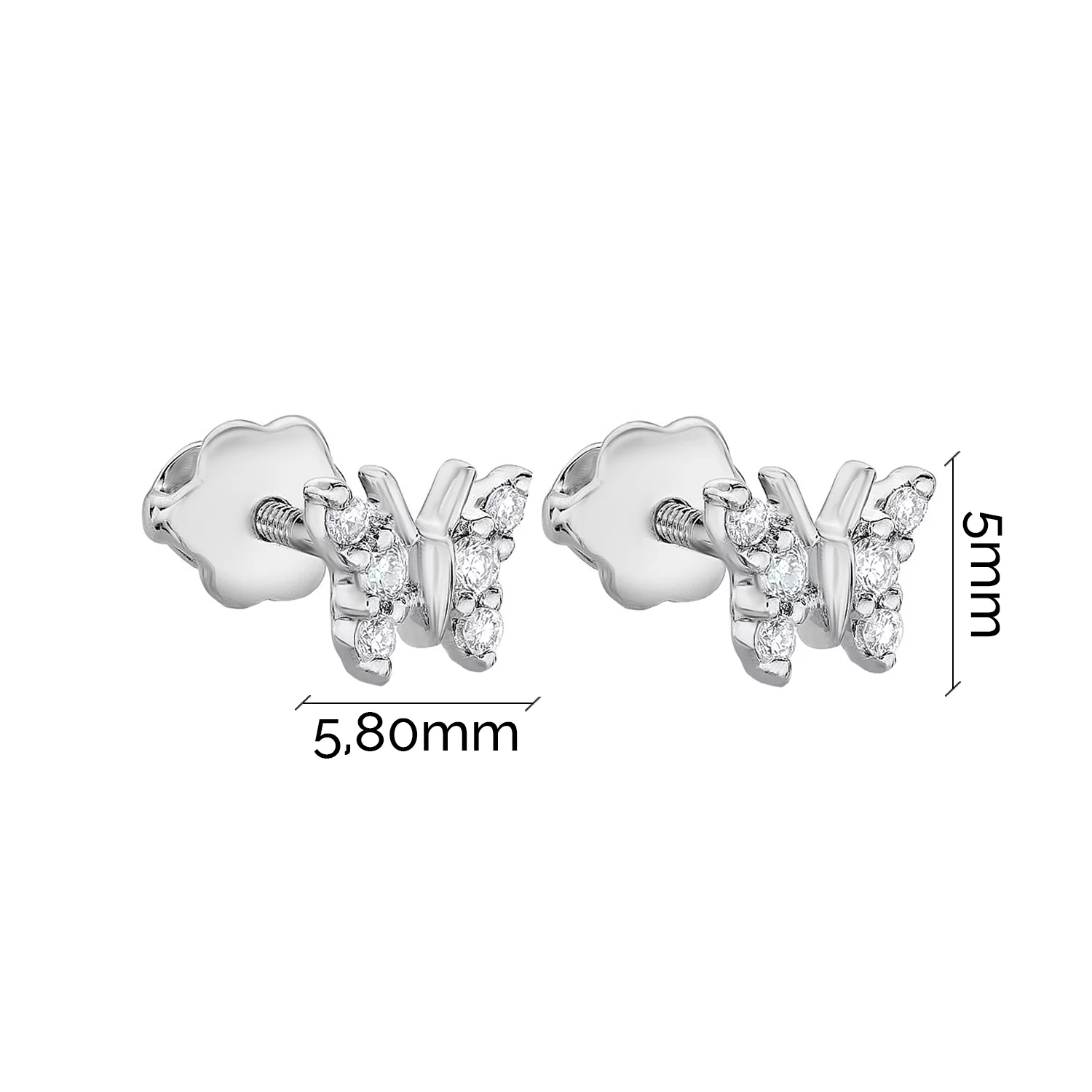 Серьги-гвоздики из белого золота с бриллиантом и алмазной гранью - 1532749
