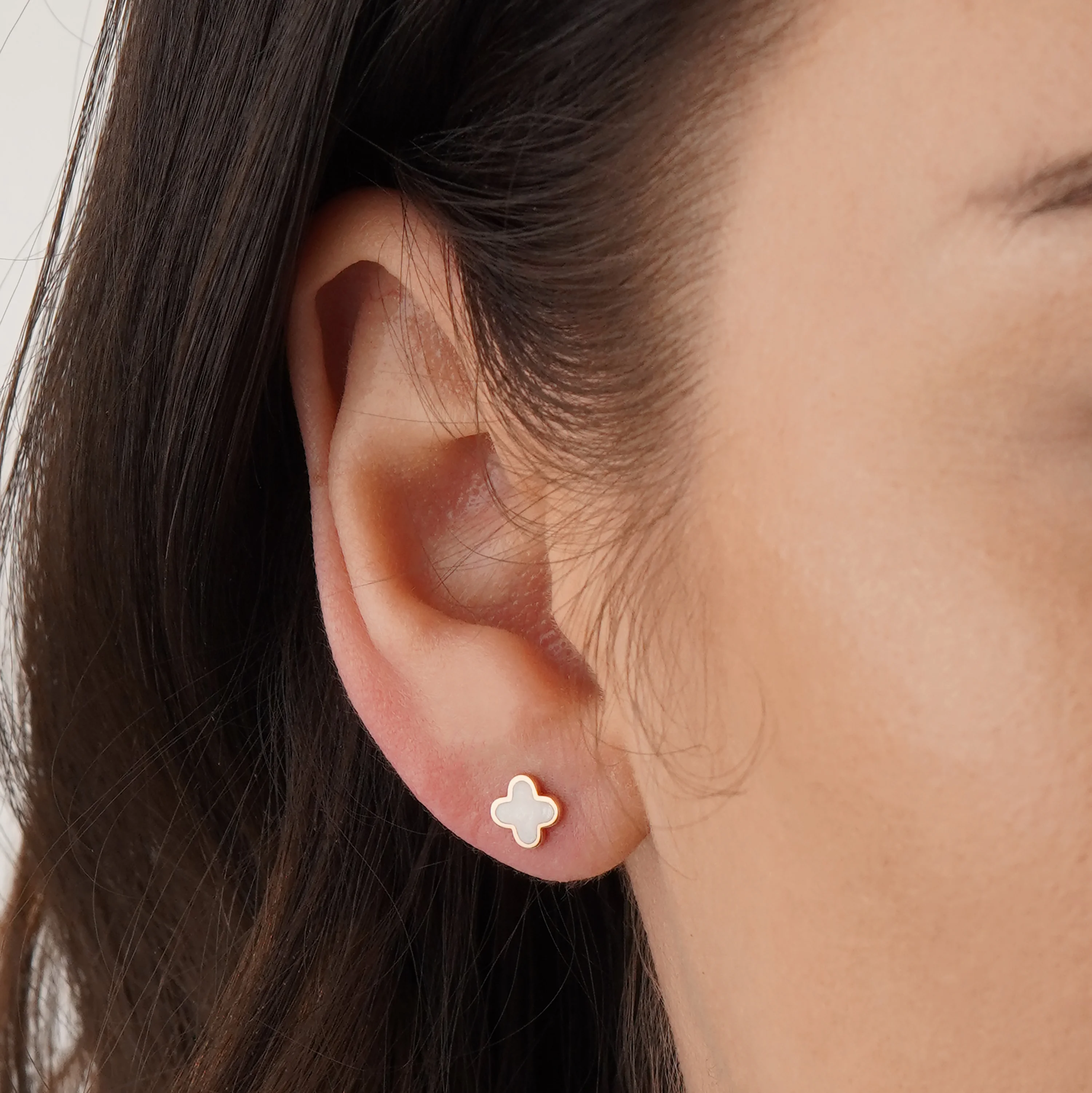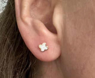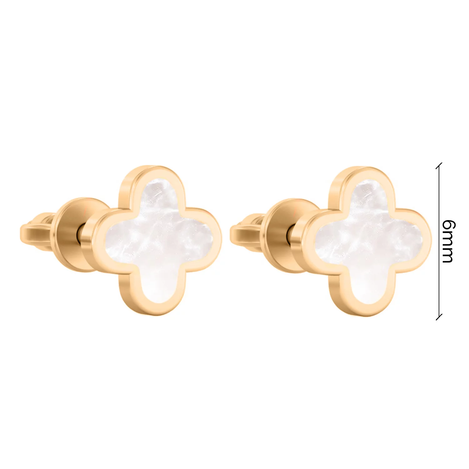 Стильные сережки-гвоздики "Клевер" из красного золота с ониксом - 1878296