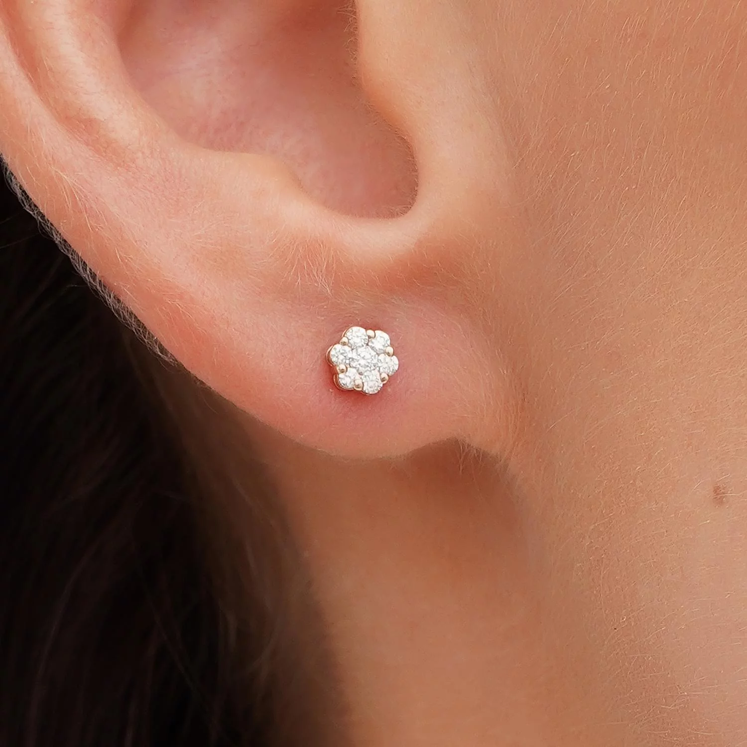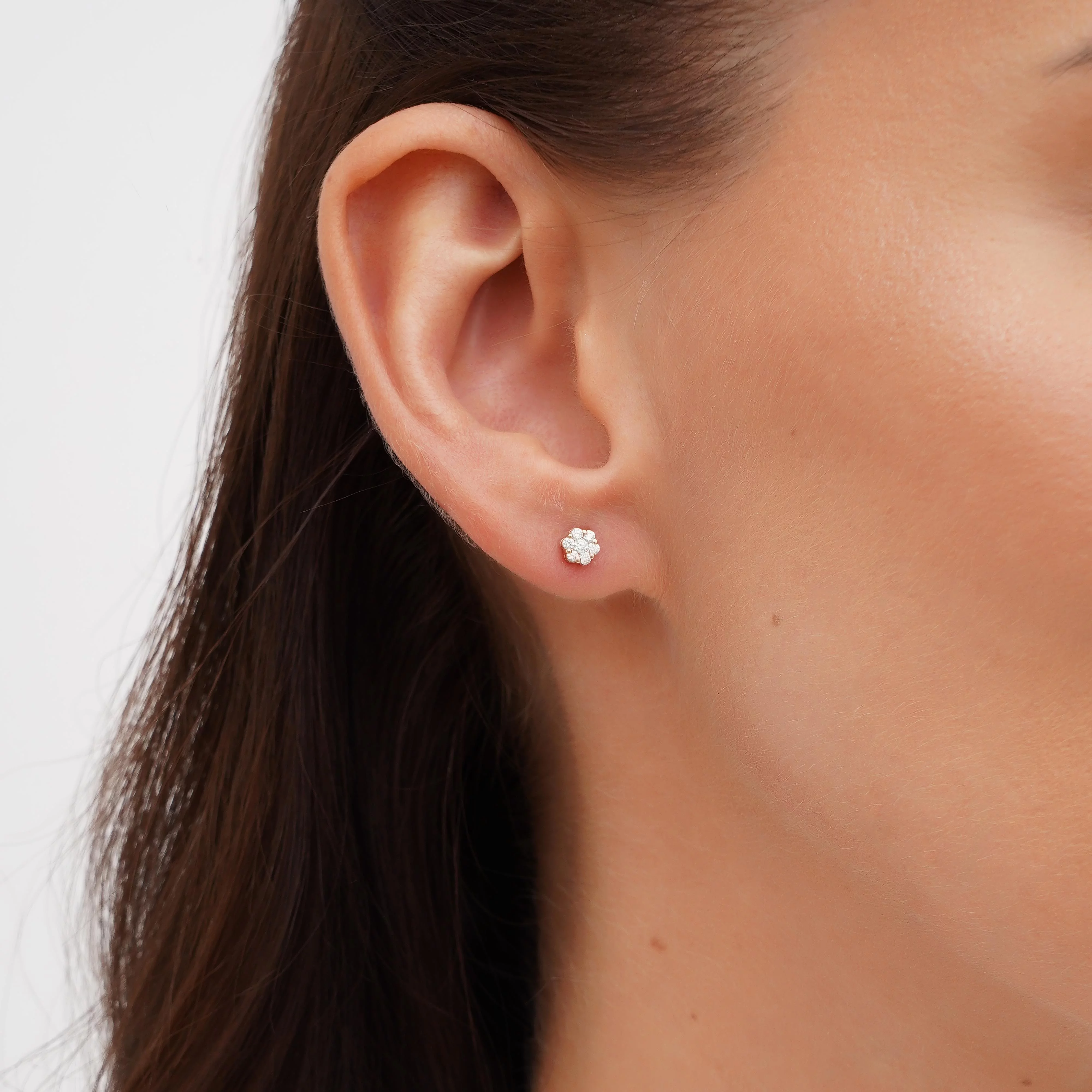 Элегантные сережки-гвоздики "Цветочек" в белом золоте с бриллиантами - 1958571