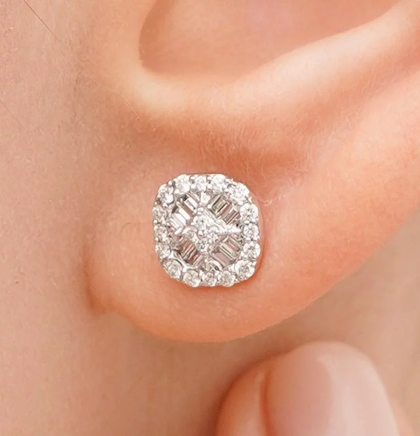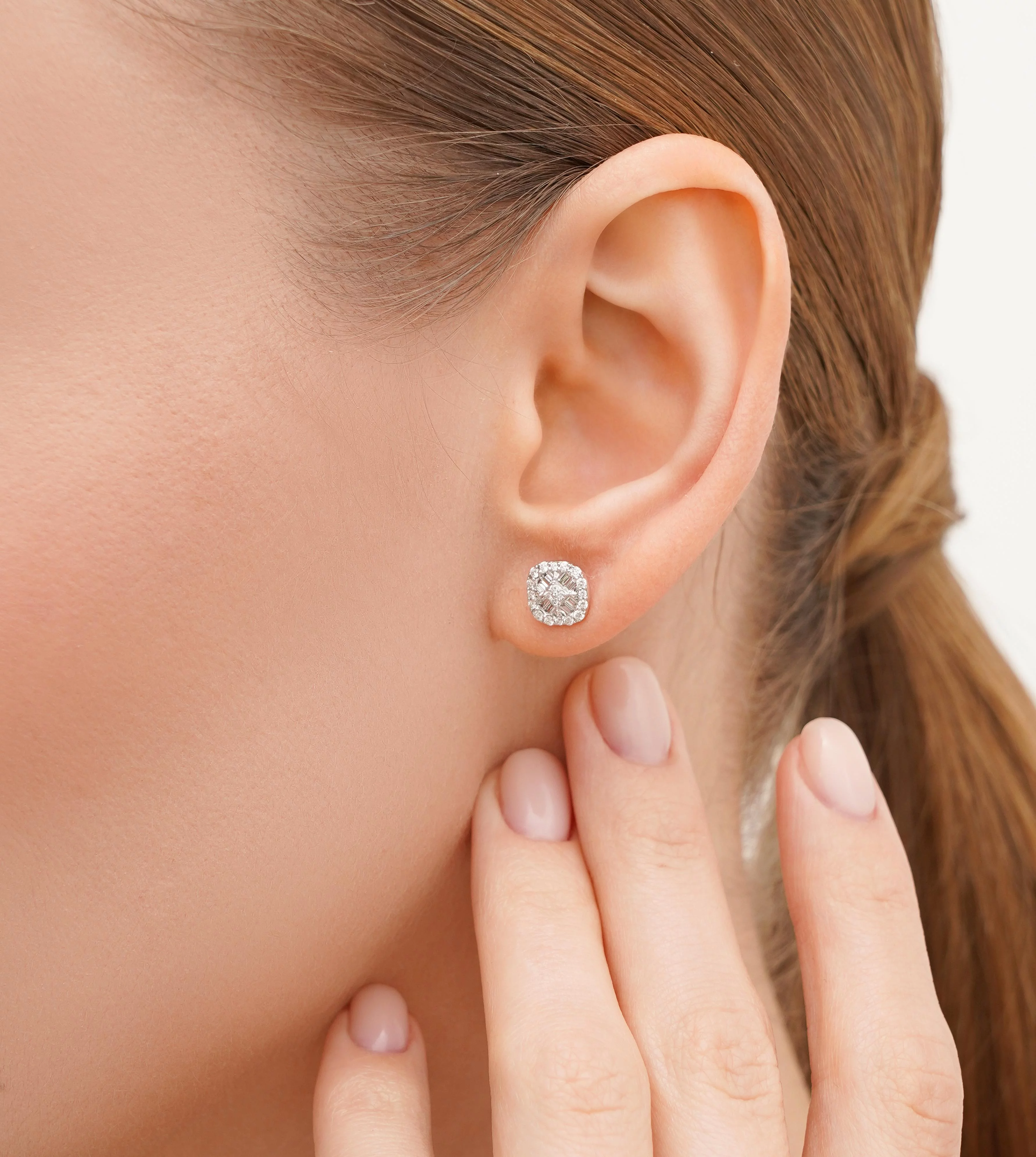 Сережки-гвоздики из красного золота в виде клевера с бриллиантами - 1771588