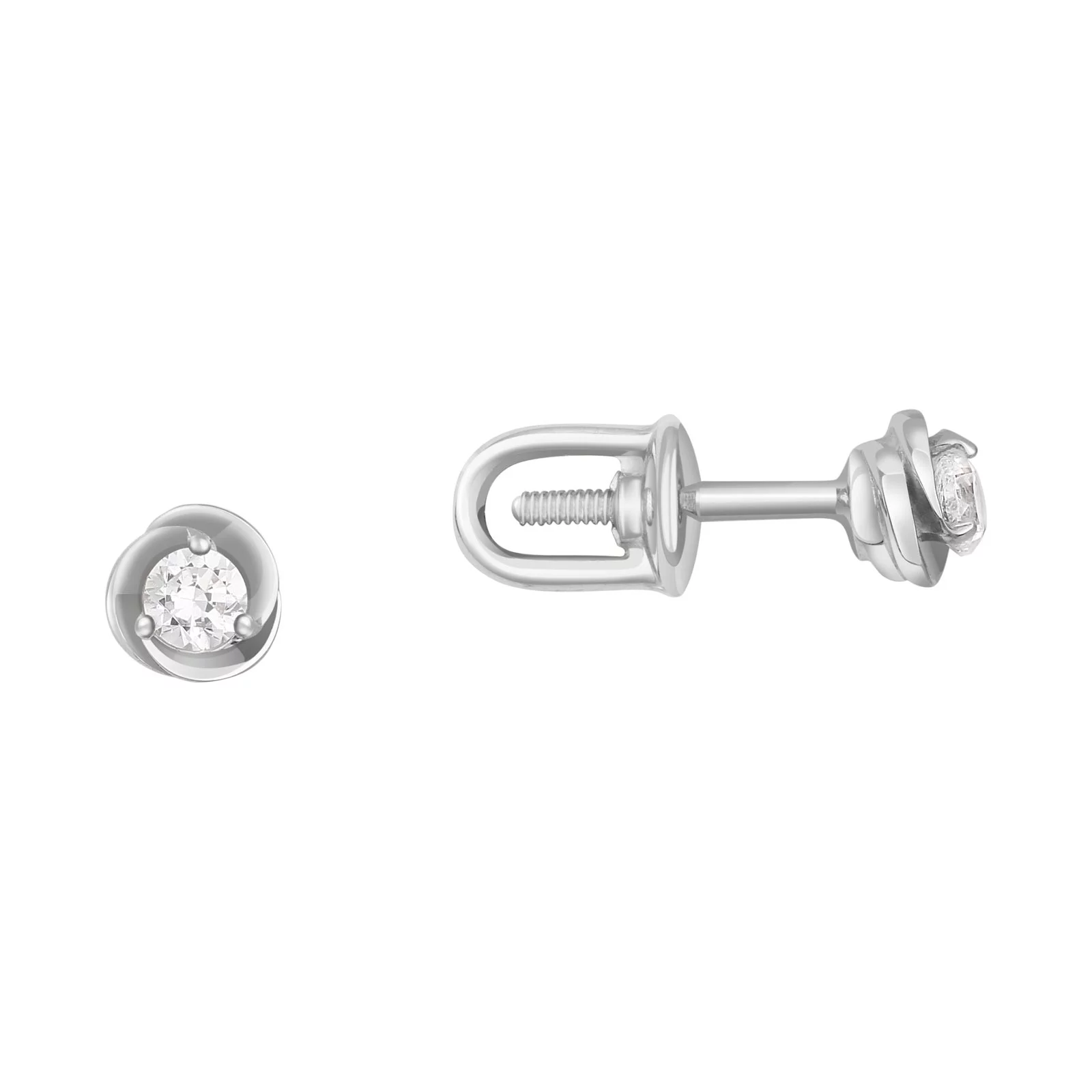 Золотые серьги-гвоздики с бриллиантом - 1395866