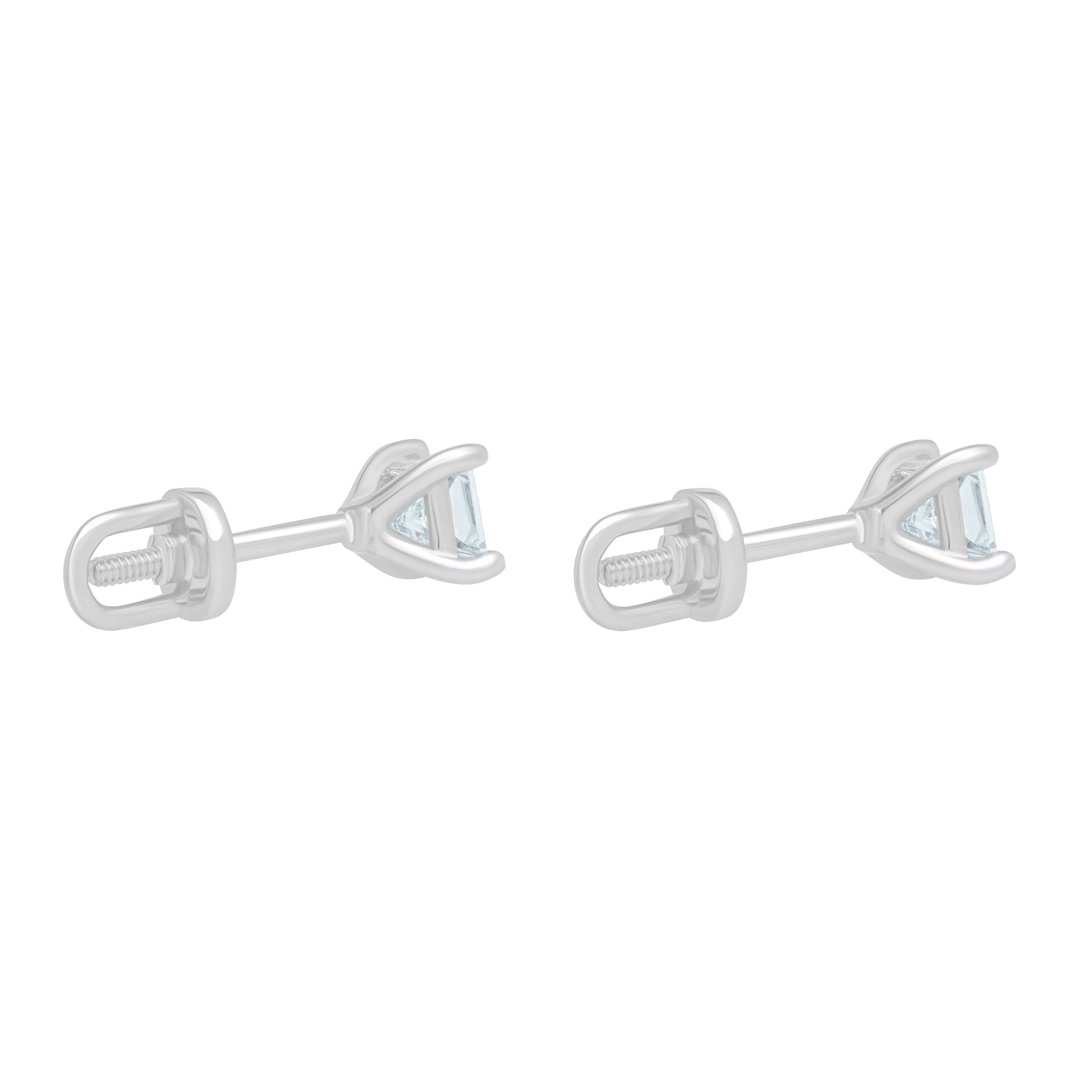 Серьги-гвоздики из белого золота с бриллиантом и алмазной гранью - 1532749