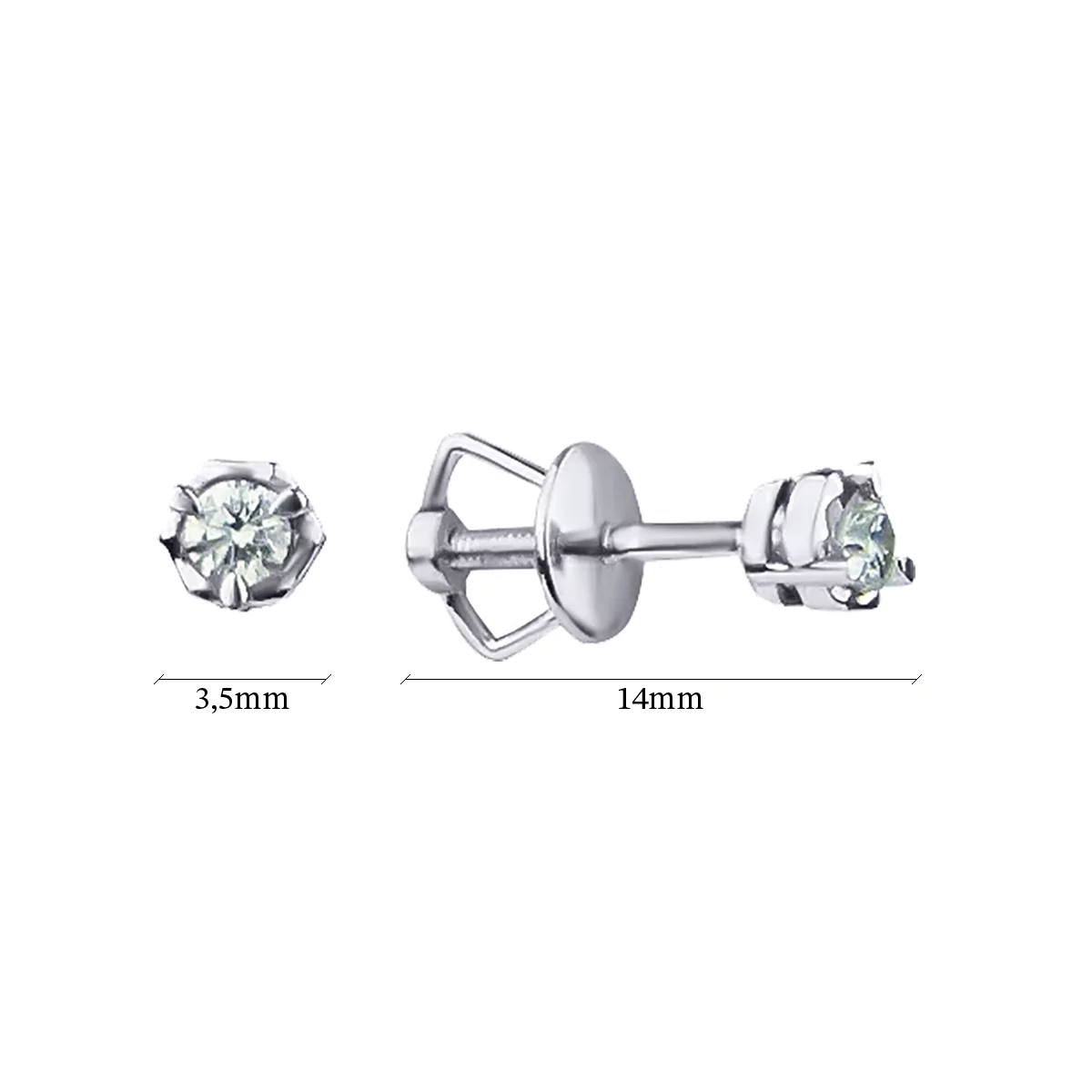 Серьги-гвоздики из белого золота отличаются классической утонченностью. Бриллиант создает изысканность и блеск модели. Для изготовления сережек использовано белое золото 585-й пробы, которому характерны прочность и приятный оттенок. Сережки-гвоздики универсальны и просты. Они надежно закрепляются фигурной застежкой, что позволяет избежать потери. Простая форма и миниатюрность дают возможность сочетать украшение с разными стилями в одежде. Минималистичные серьги дополнят любой праздничный и повседневный наряд, удачно подчеркивая его.