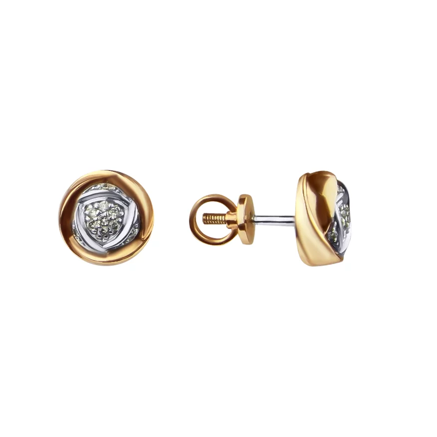Золотые серьги-гвоздики с бриллиантом - 411644