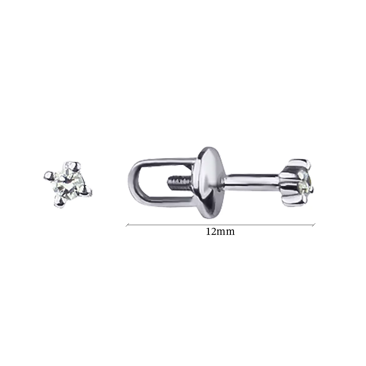 Серьги-гвоздики с бриллиантом в белом золоте - 586101