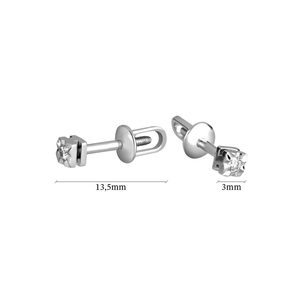 Серьги-гвоздики с бриллиантом в белом золоте - 594437