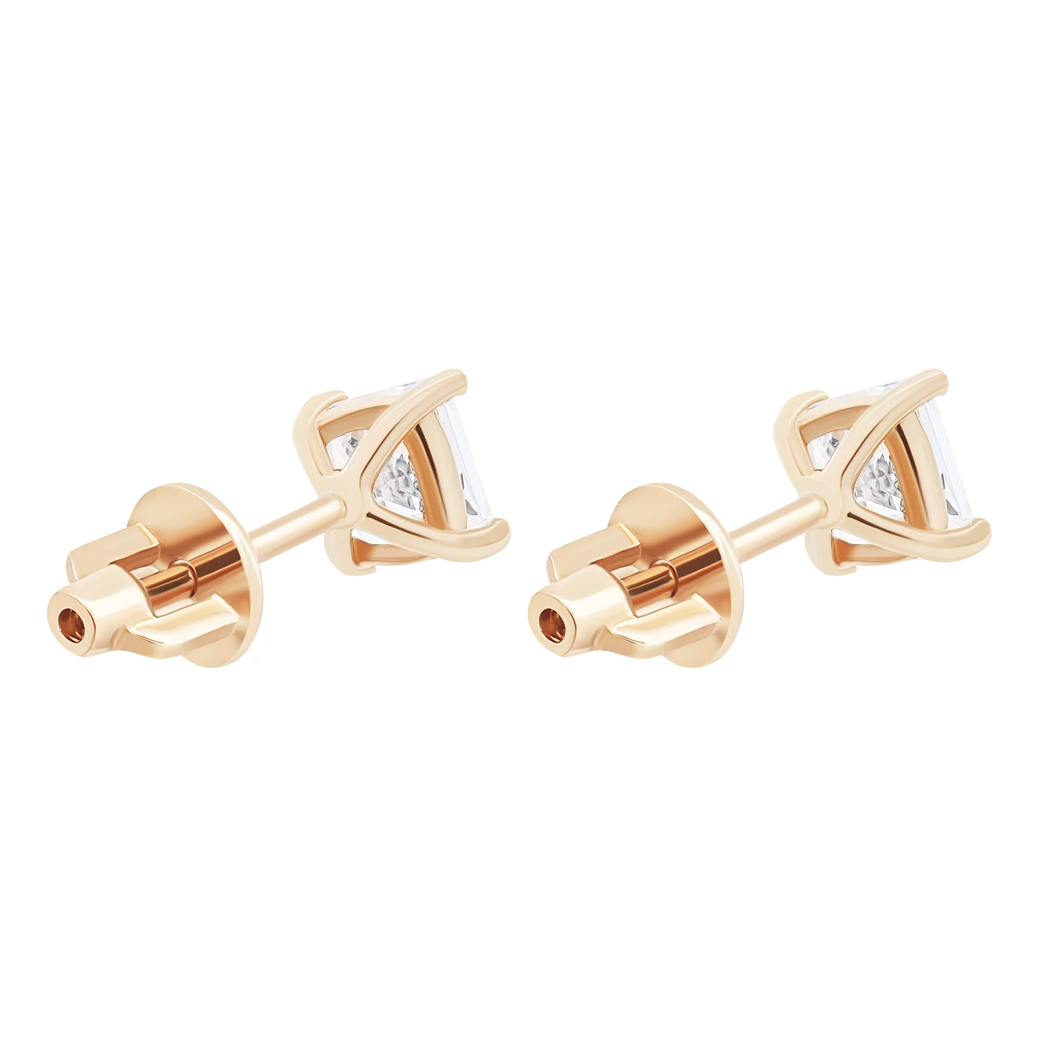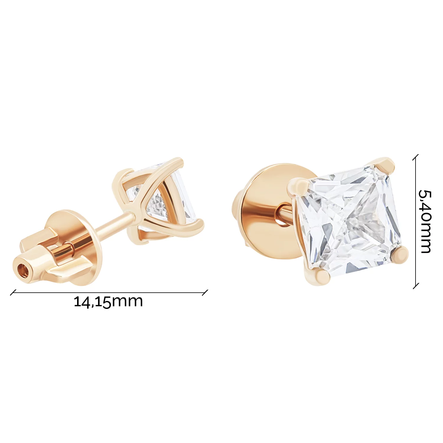 Сережки-гвоздики "Сердце" в романтичном стиле из красного золота и с фианитами - 1859350