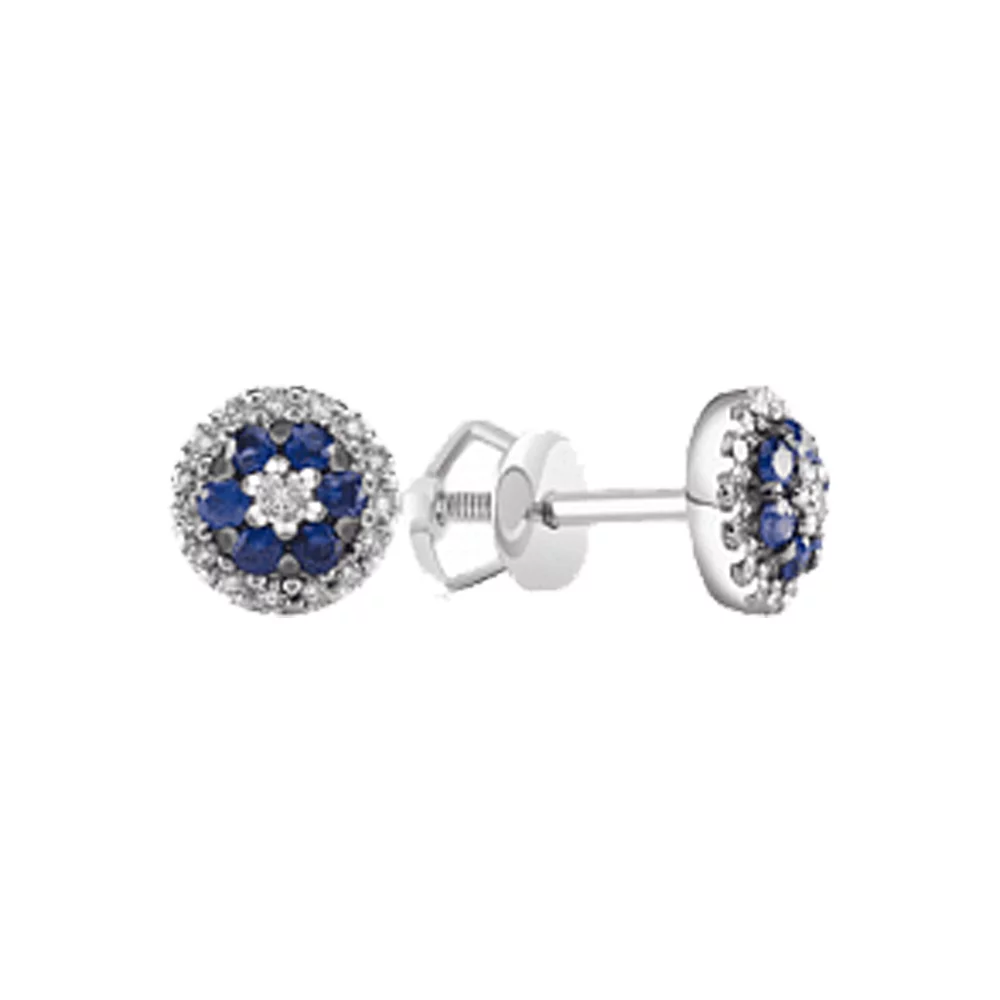 Золотые серьги-гвоздики с сапфирами и бриллиантами - 1423655