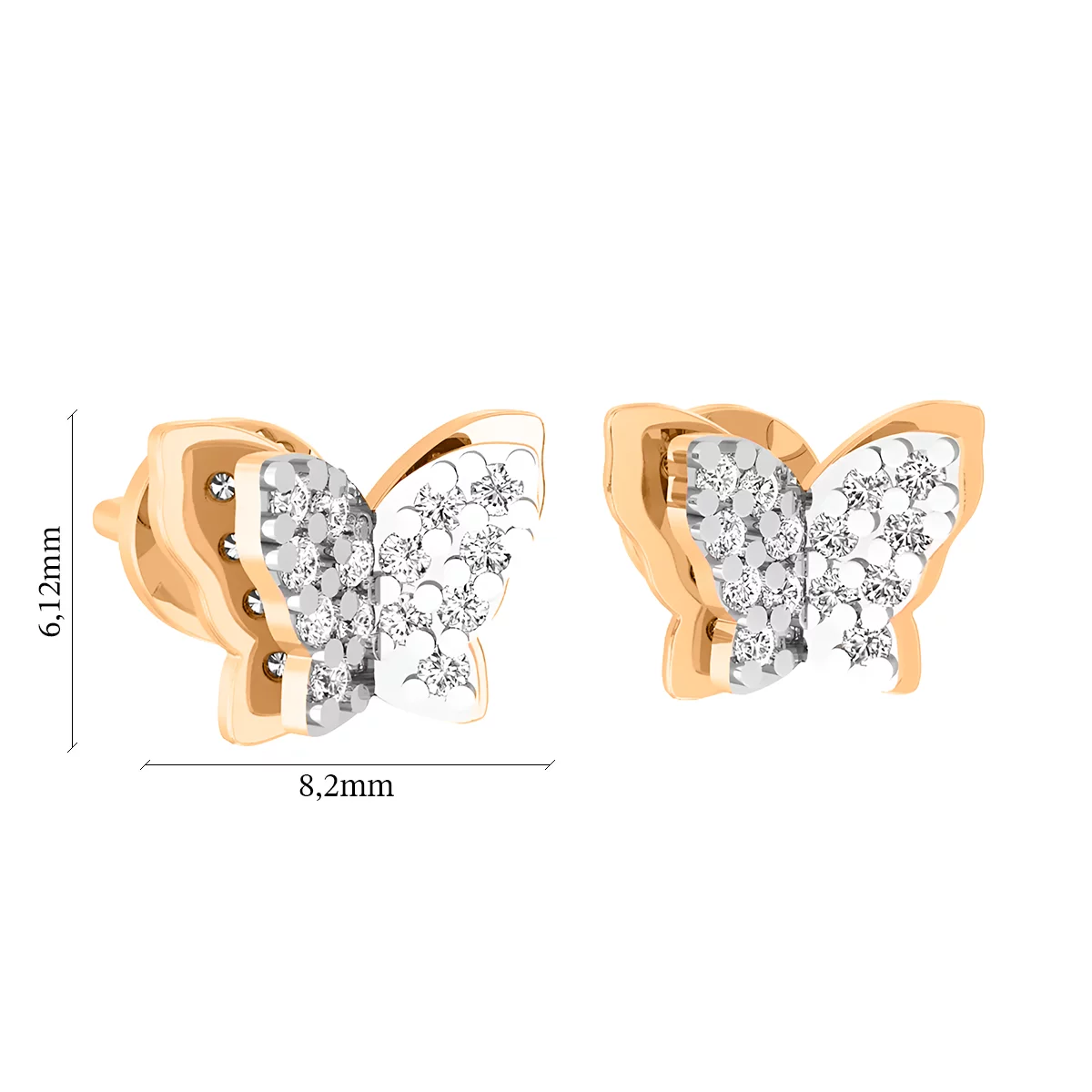 Золотые серьги-гвоздики с фианитами "Бабочка" - 613728