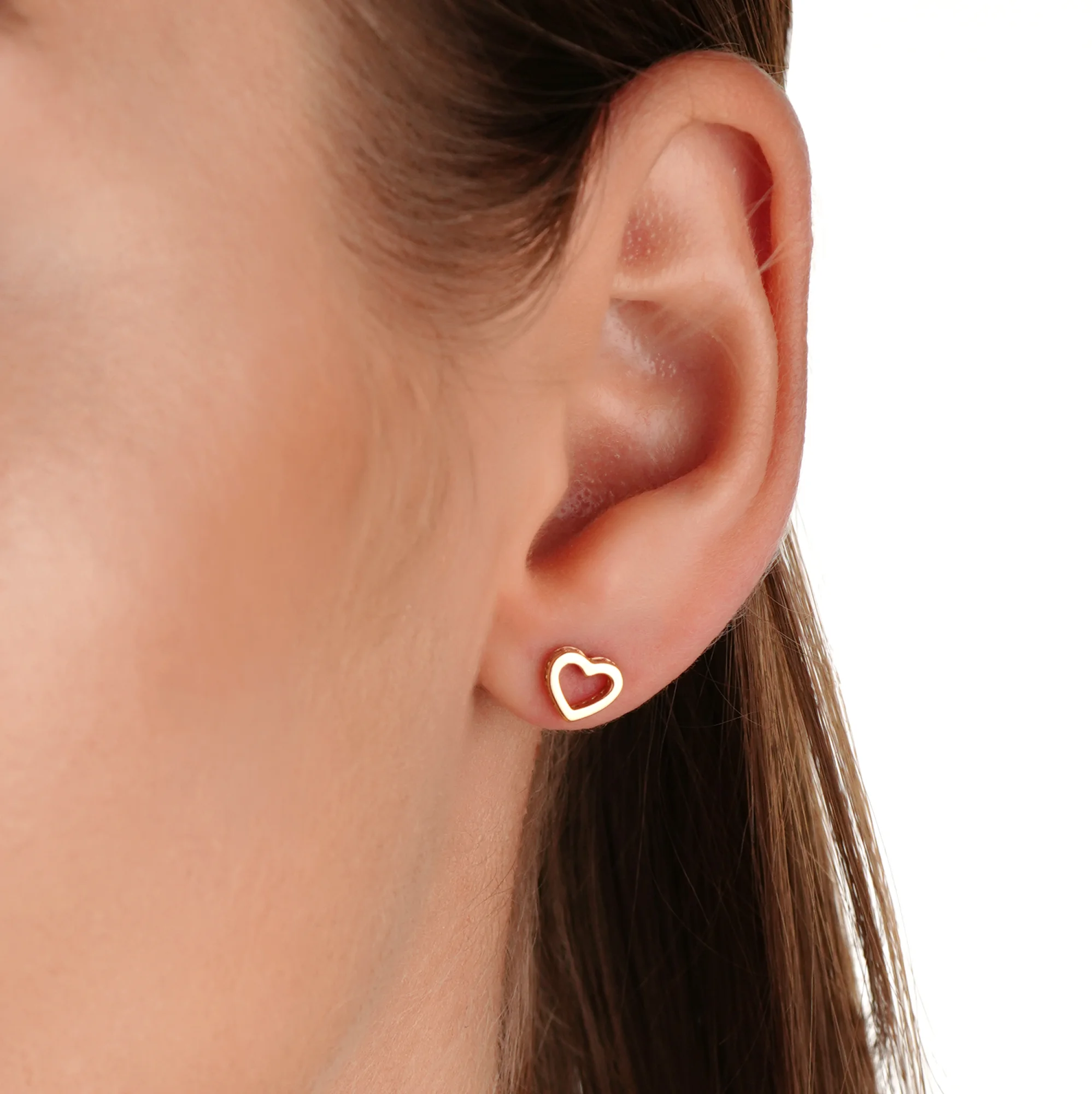 Сережки-гвоздики "Сердце" в романтичном стиле из красного золота и с фианитами - 1859350