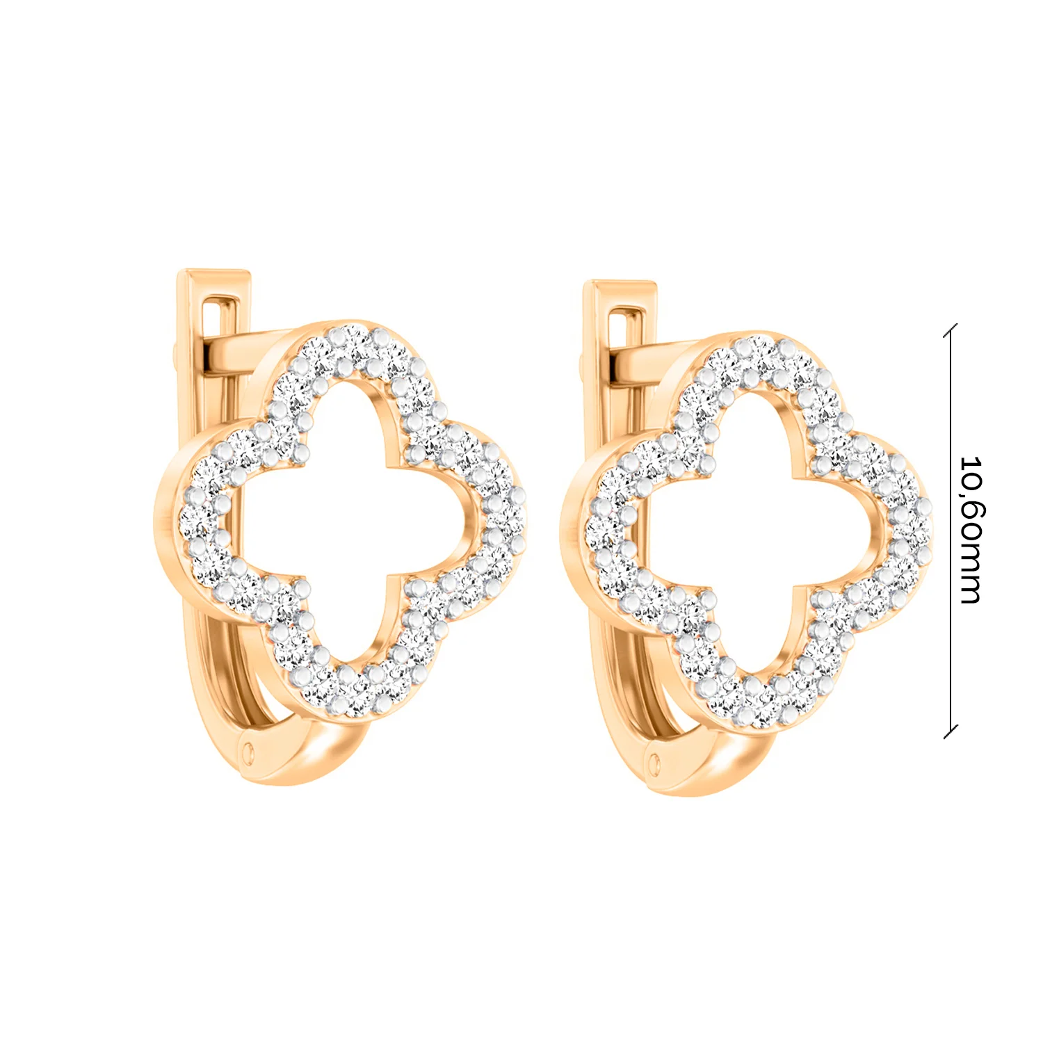 Серьги-кольца с подвесами в красном золоте "Клевер" с фианитами - 1618472