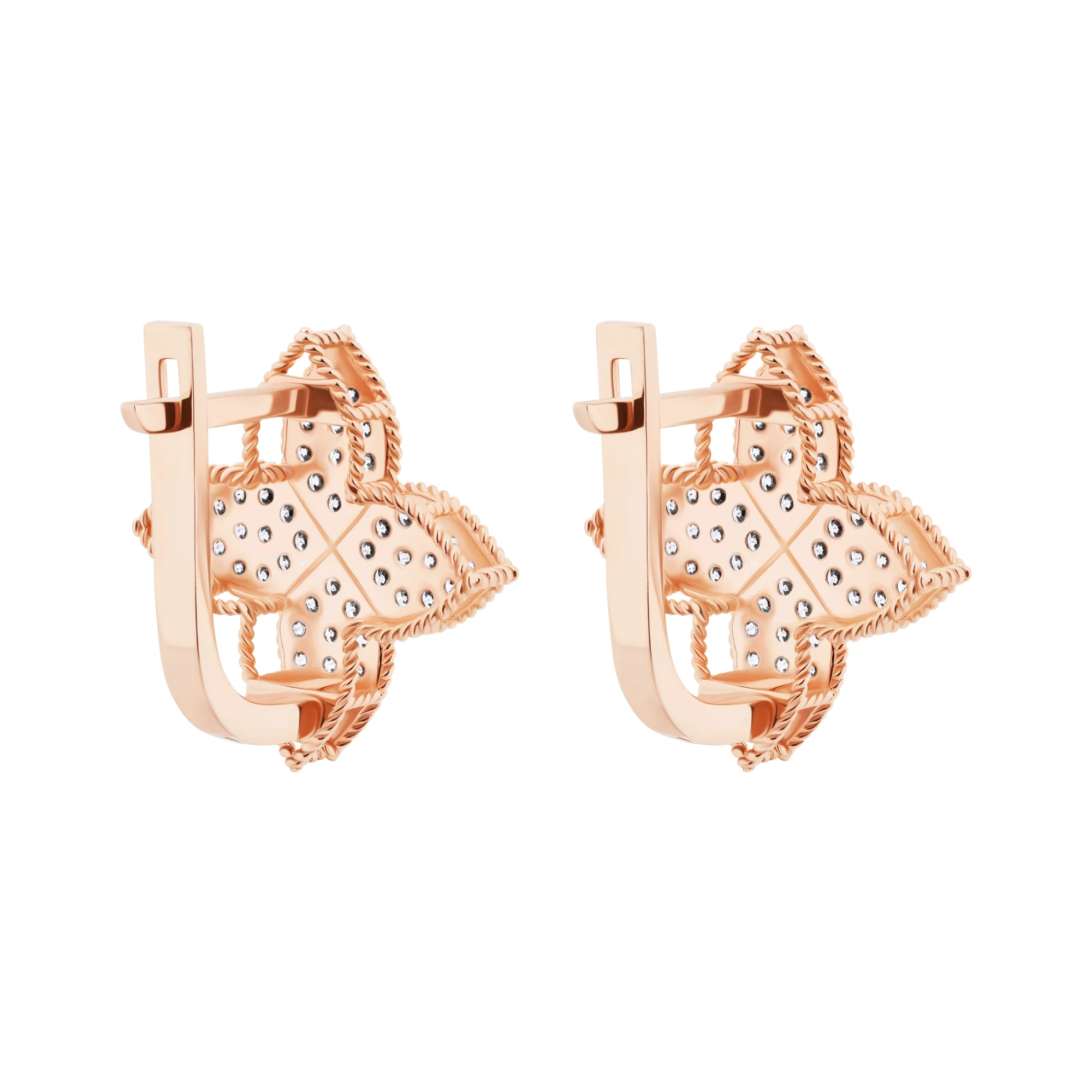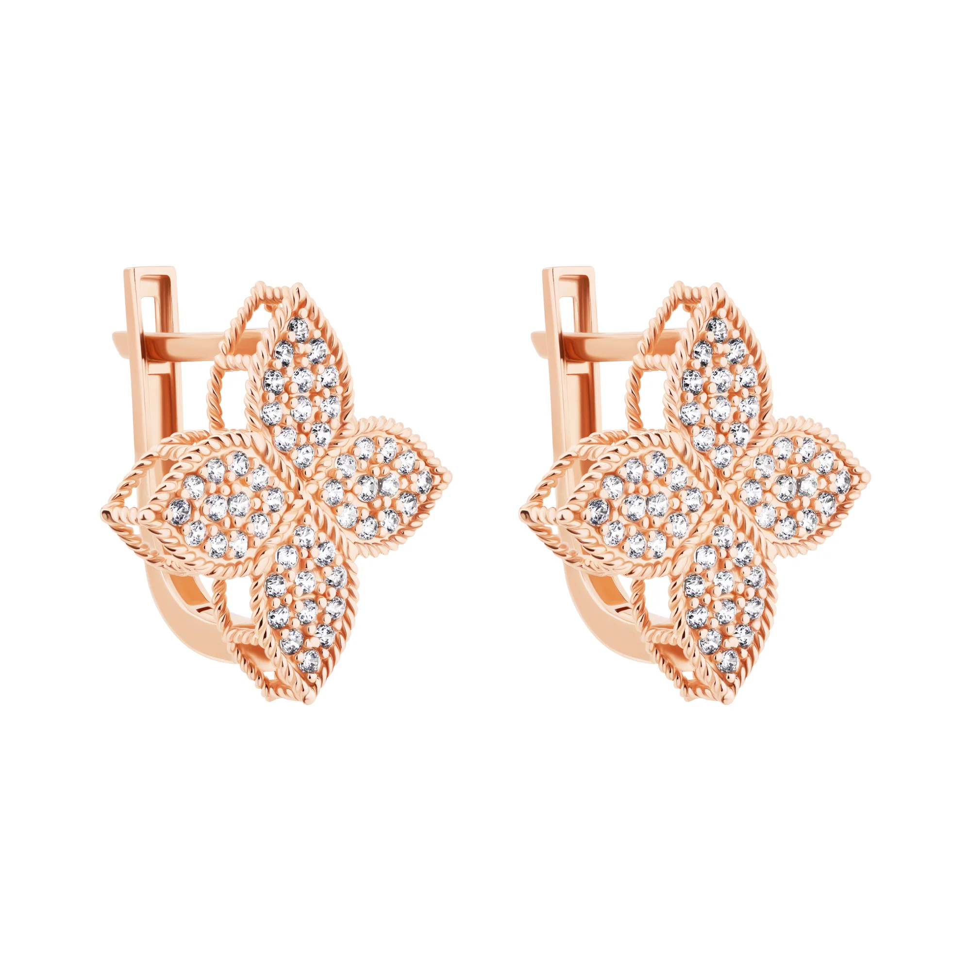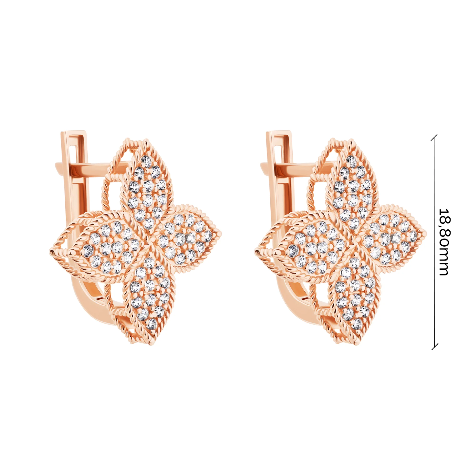 Золотые серьги "Цветок" в красном золоте с фианитами - 2112772