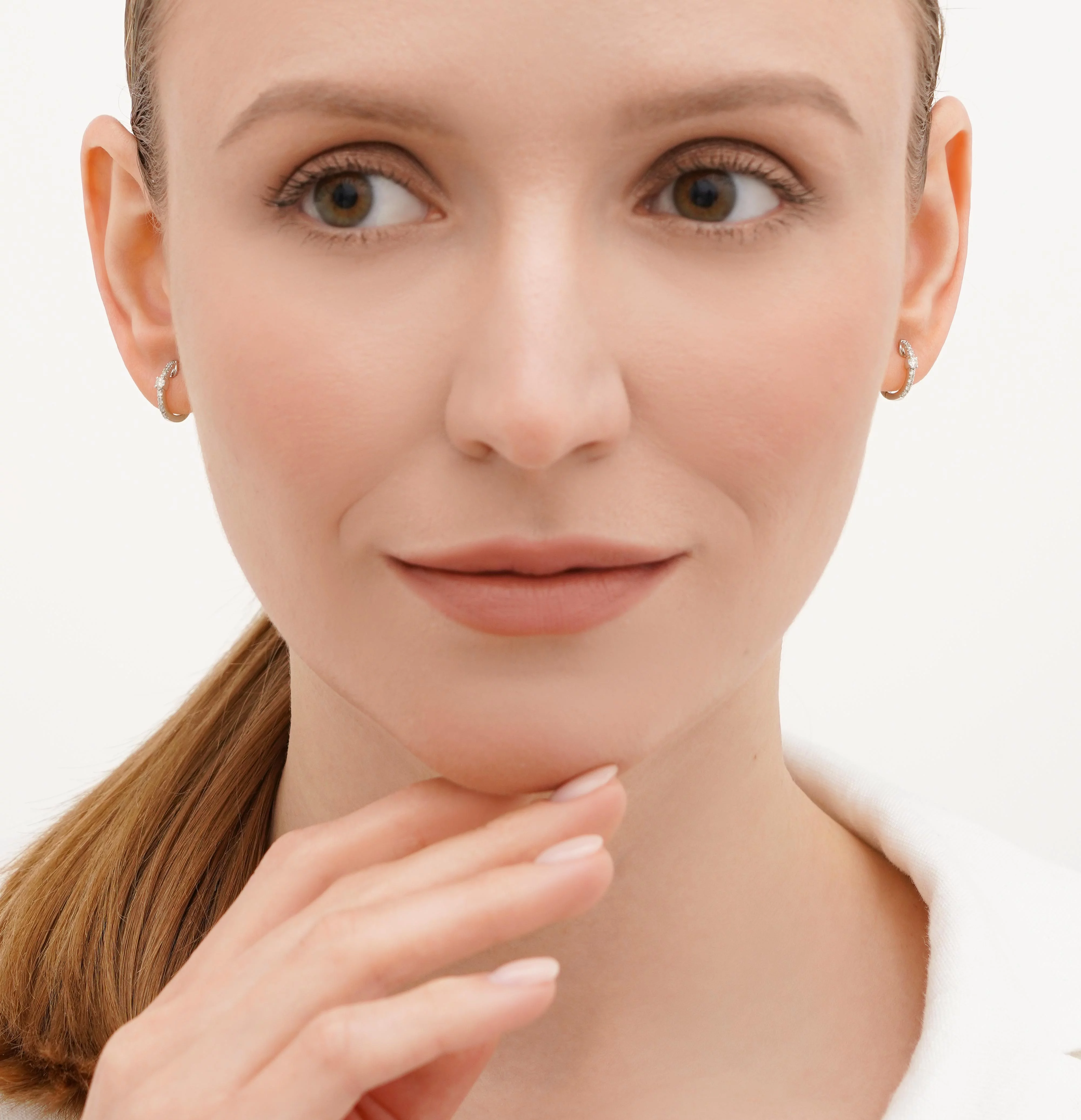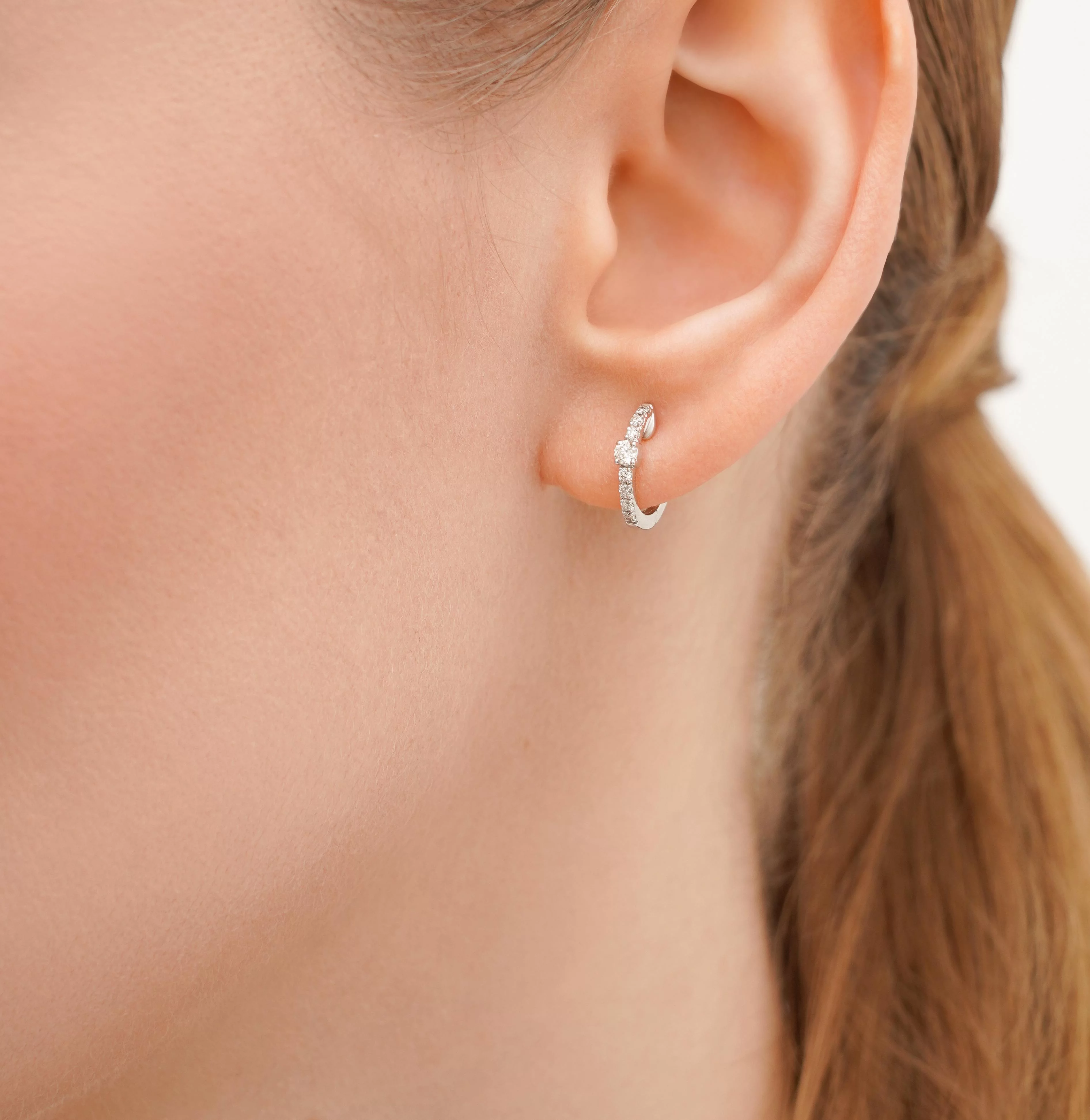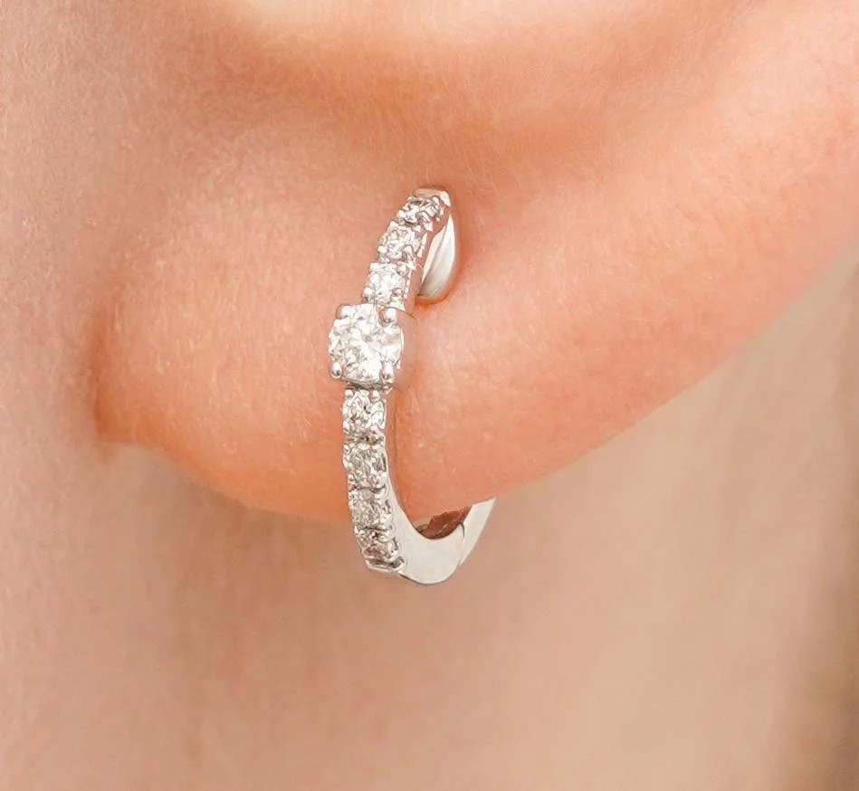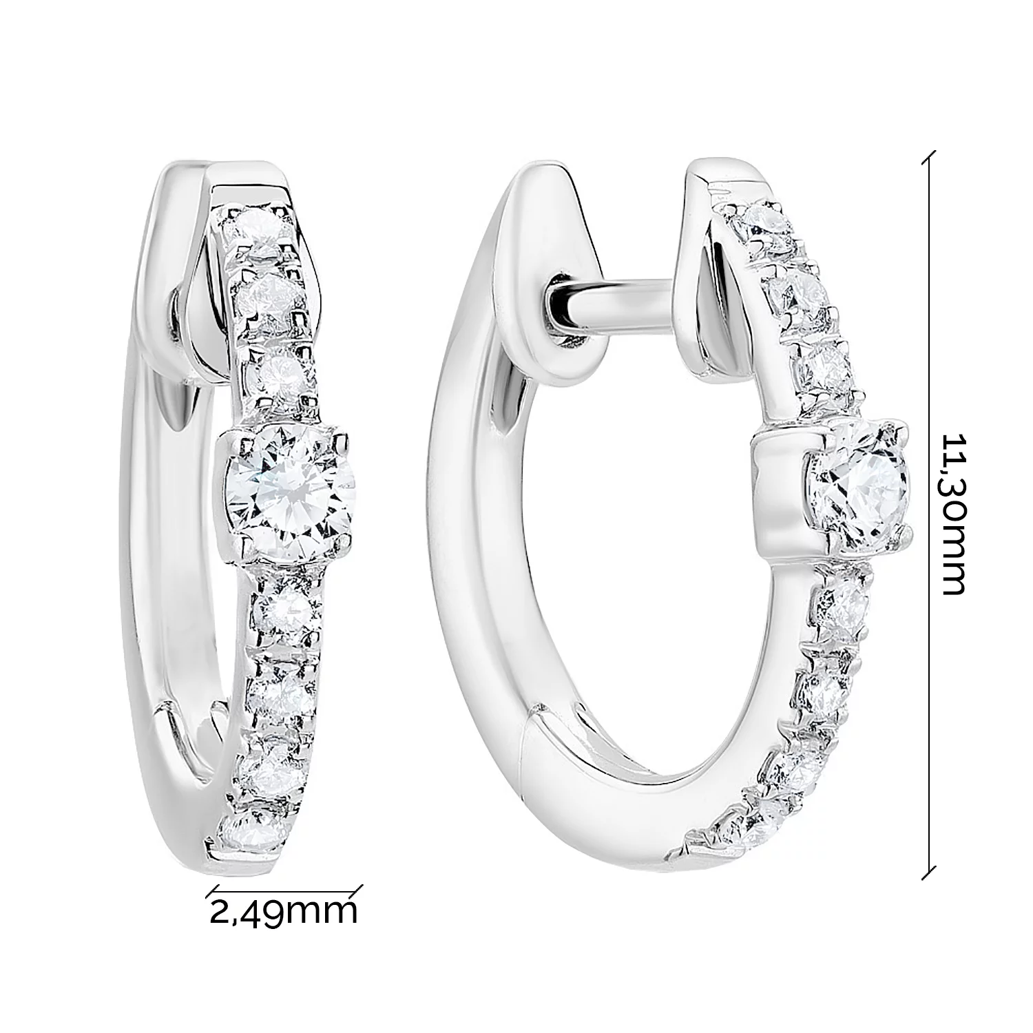Сережки-кольца в минималистичном стиле из белого золота с бриллиантом - 1872161
