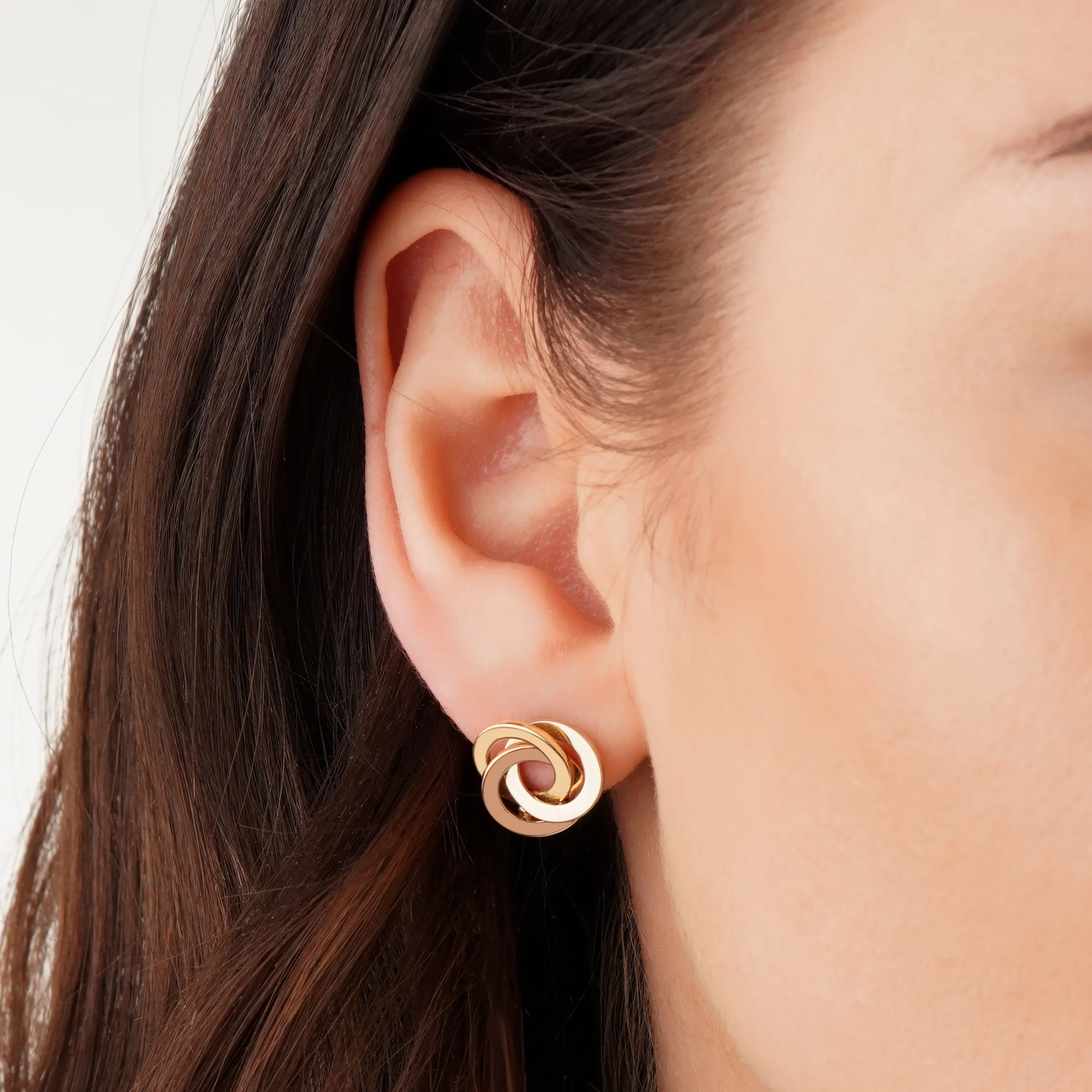 Серьги из красного золота с подвесами "Кольца" с алмазной гранью - 1562490