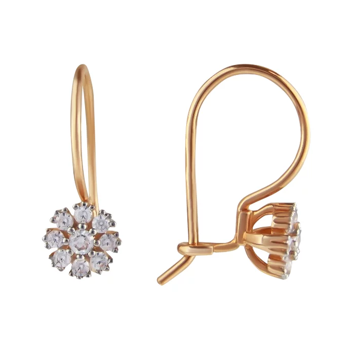 Золотые серьги-петли с фианитами Цветок - 1390484