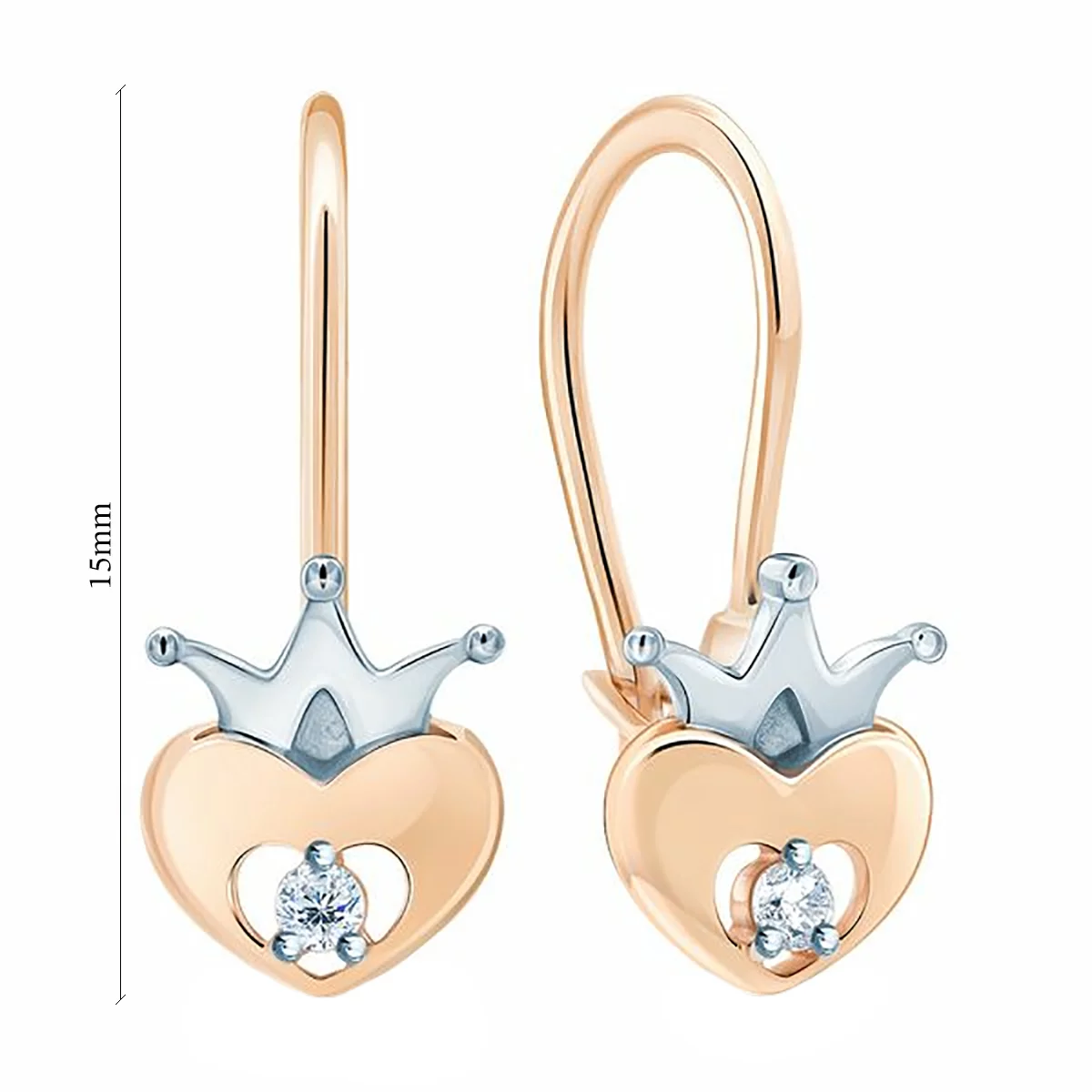 Золотые серьги-петля "Корона" с фианитом - 406773