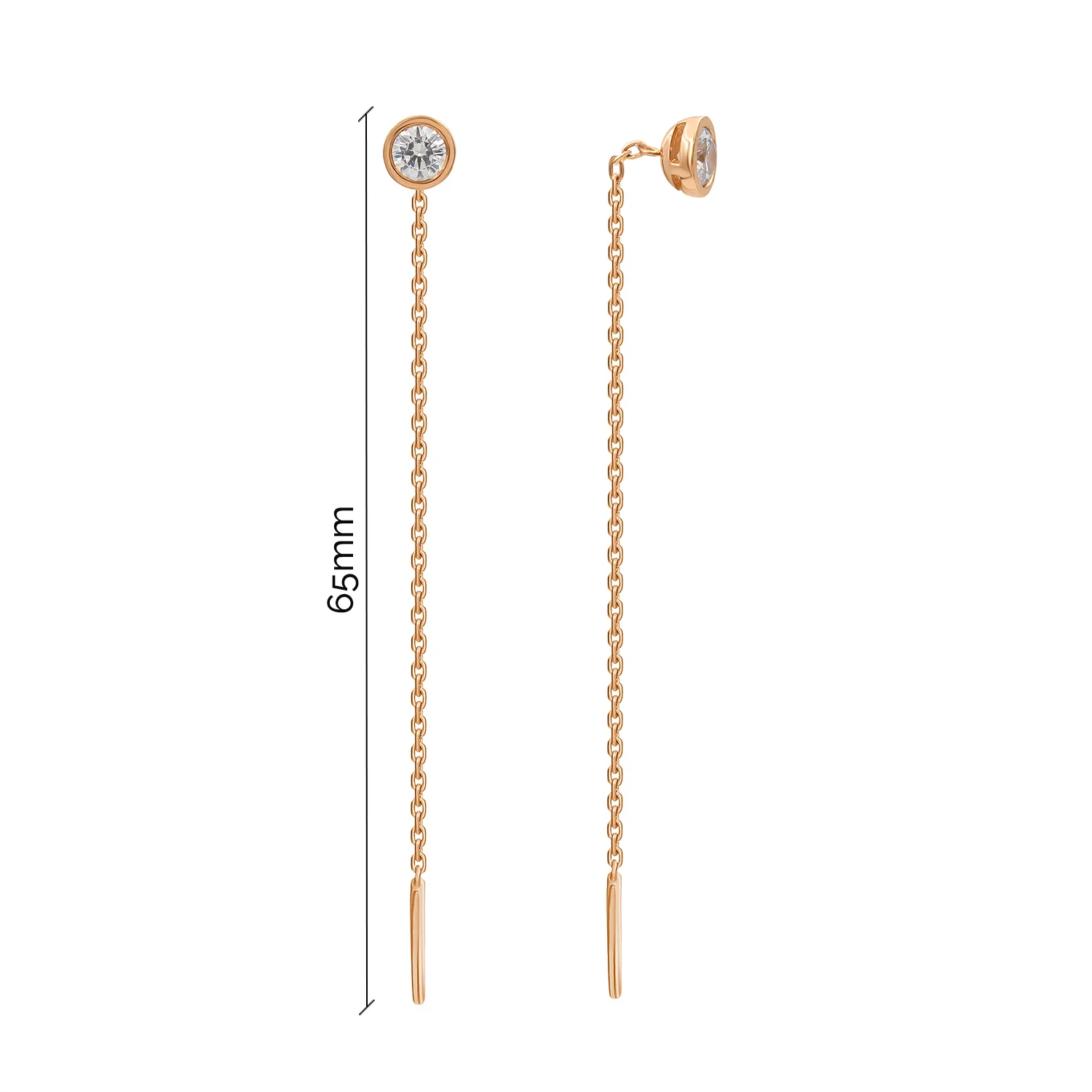 Элегантные сережки-протяжки в минималистичном дизайне из белого золота и фианитами - 1870345