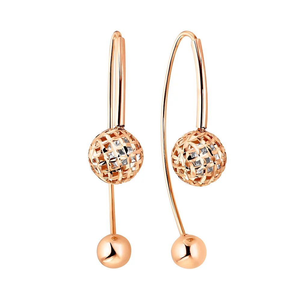 Золотые серьги-петли "Шары" с фианитом - 1503885