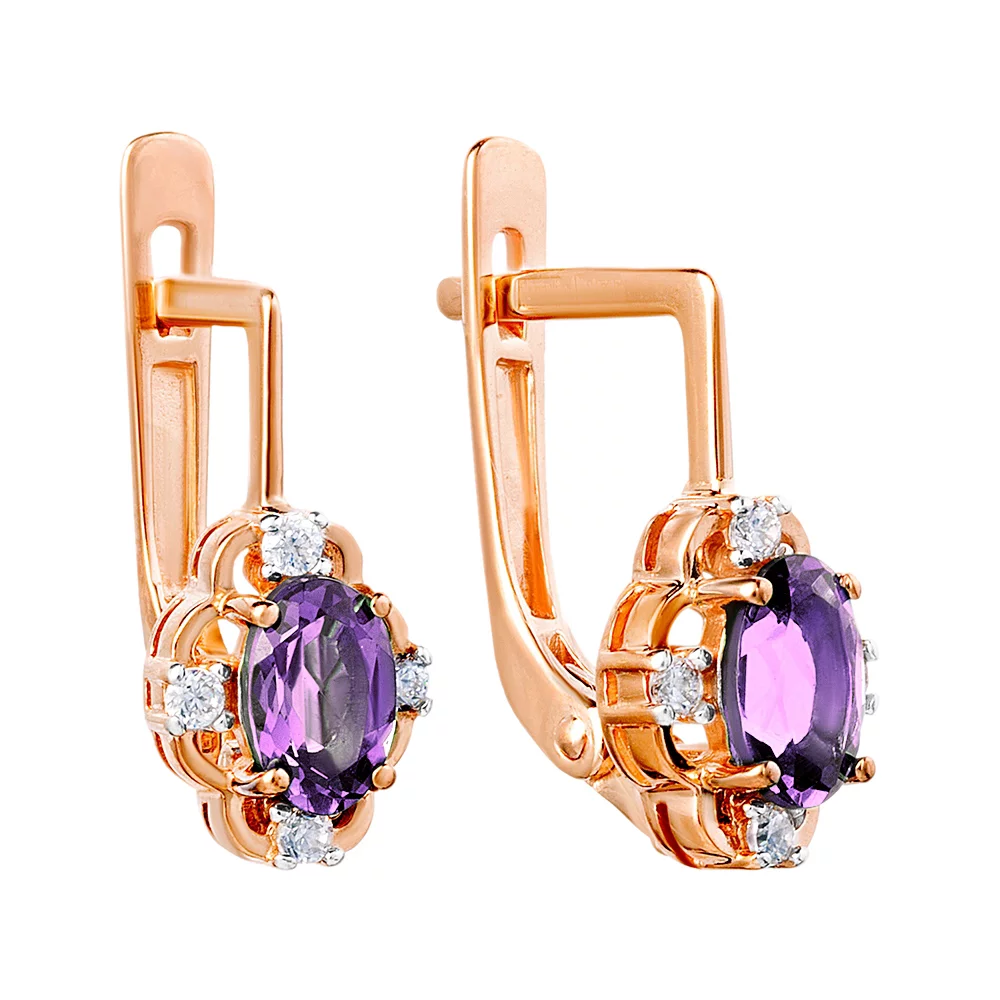 Золотые серьги с аметистом и фианитами - 1505058