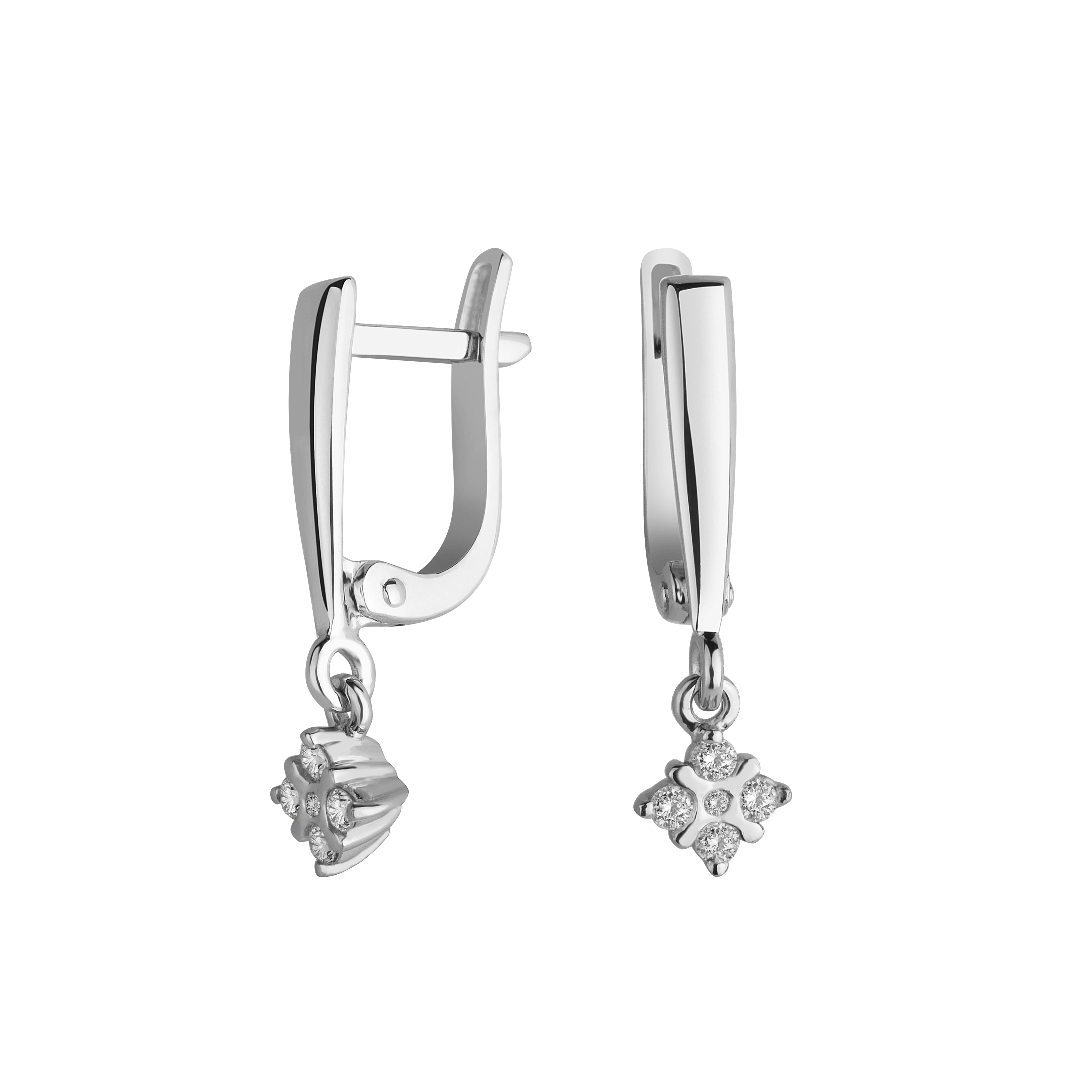 Серьги с бриллиантом и подвесом в белом золоте - 586090
