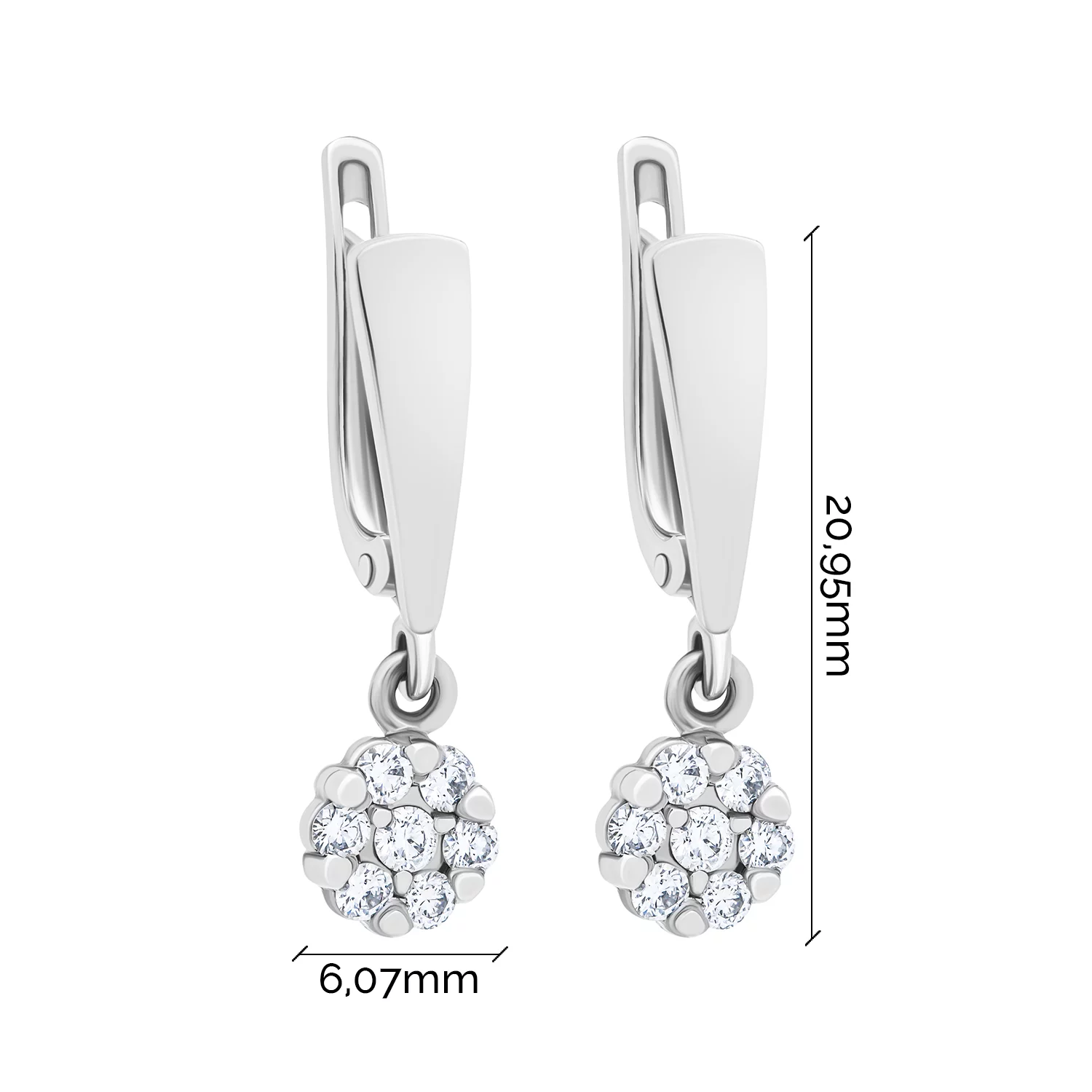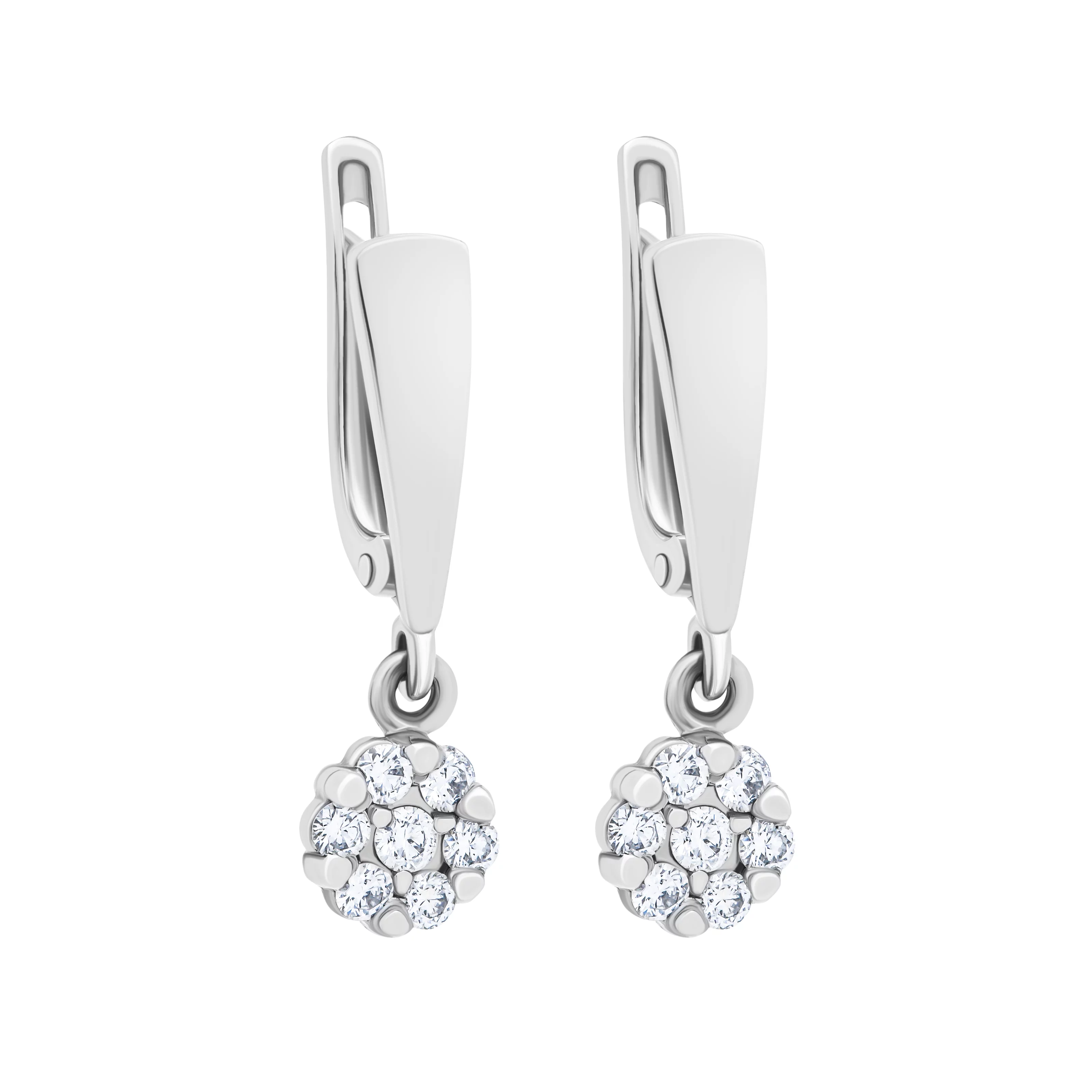 Сережки с подвесками и дорожкой бриллиантов из белого золота - 1489026