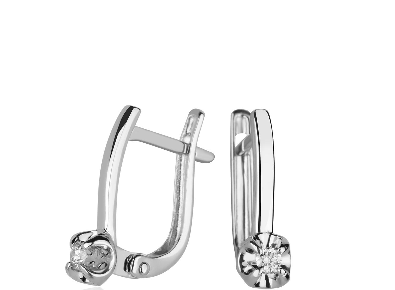 Серьги с бриллиантом в белом золоте - 628928