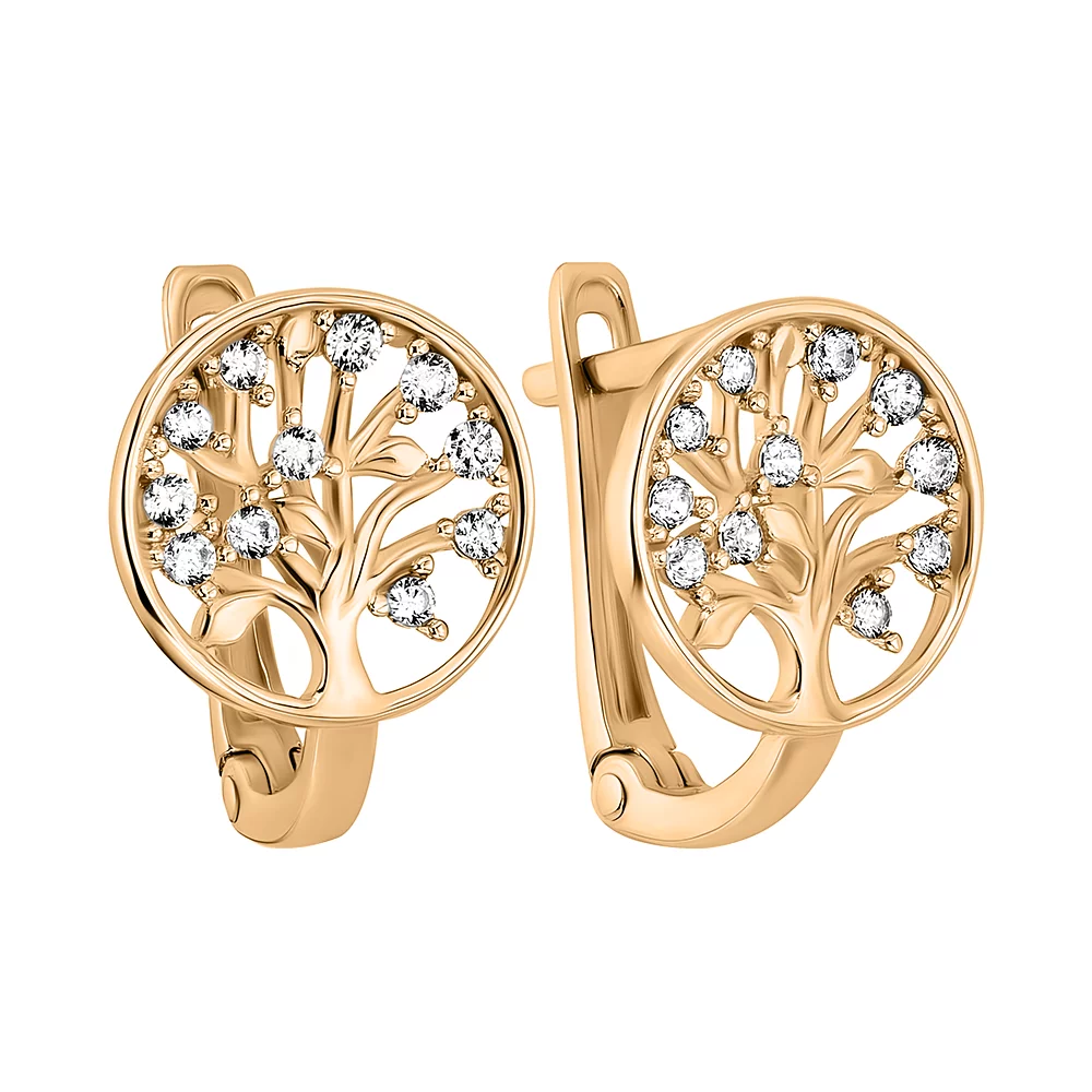 Сережки в форме листочка из красного золота с жемчужиной и фианитами - 1630904