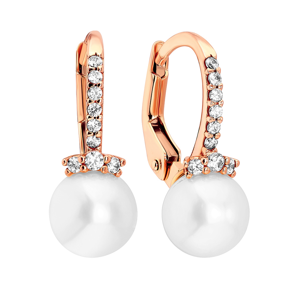 Золотые серьги с фианитами и жемчугом - 1502908