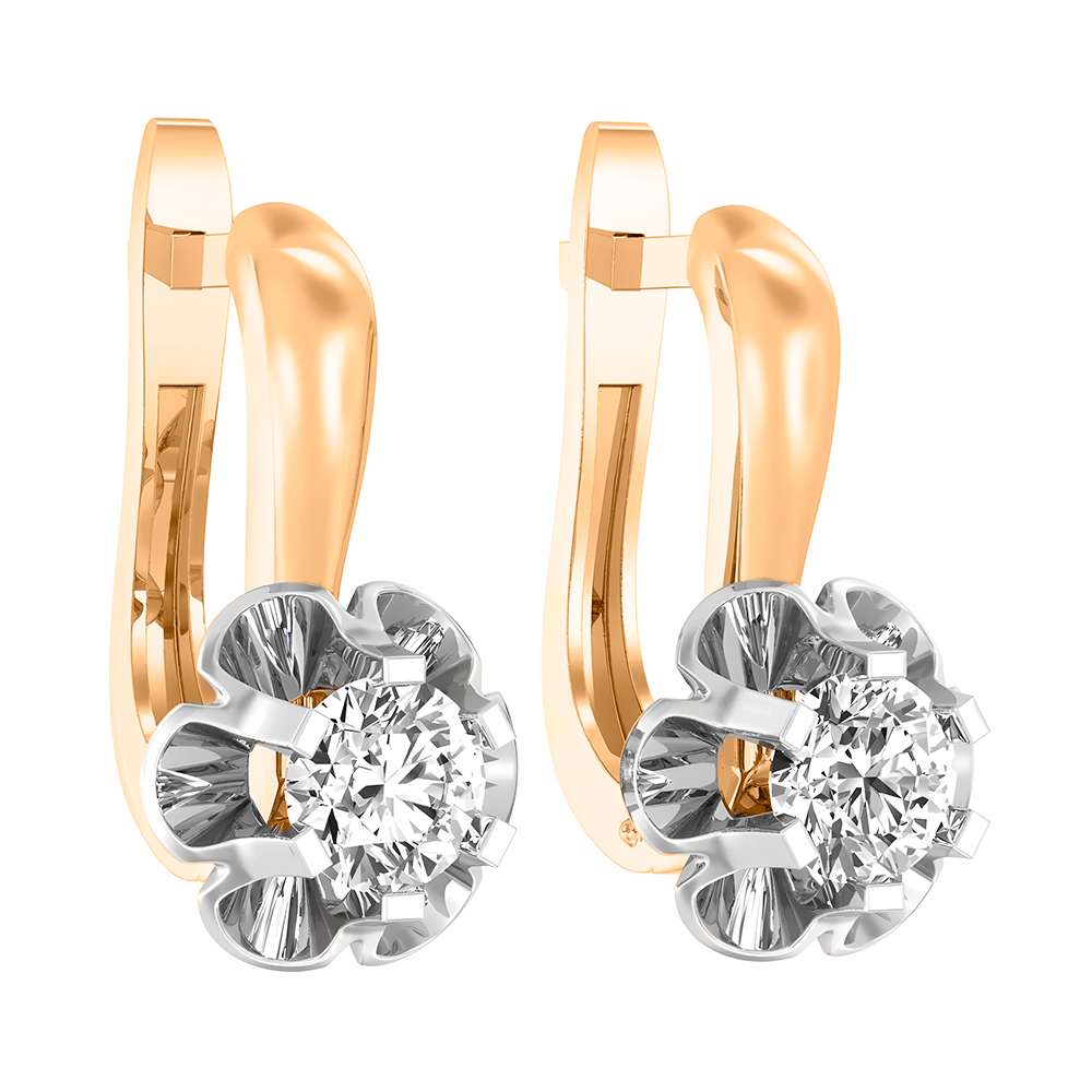 Серьги в комбинированном золоте с фианитом "Цветочек" - 1513416