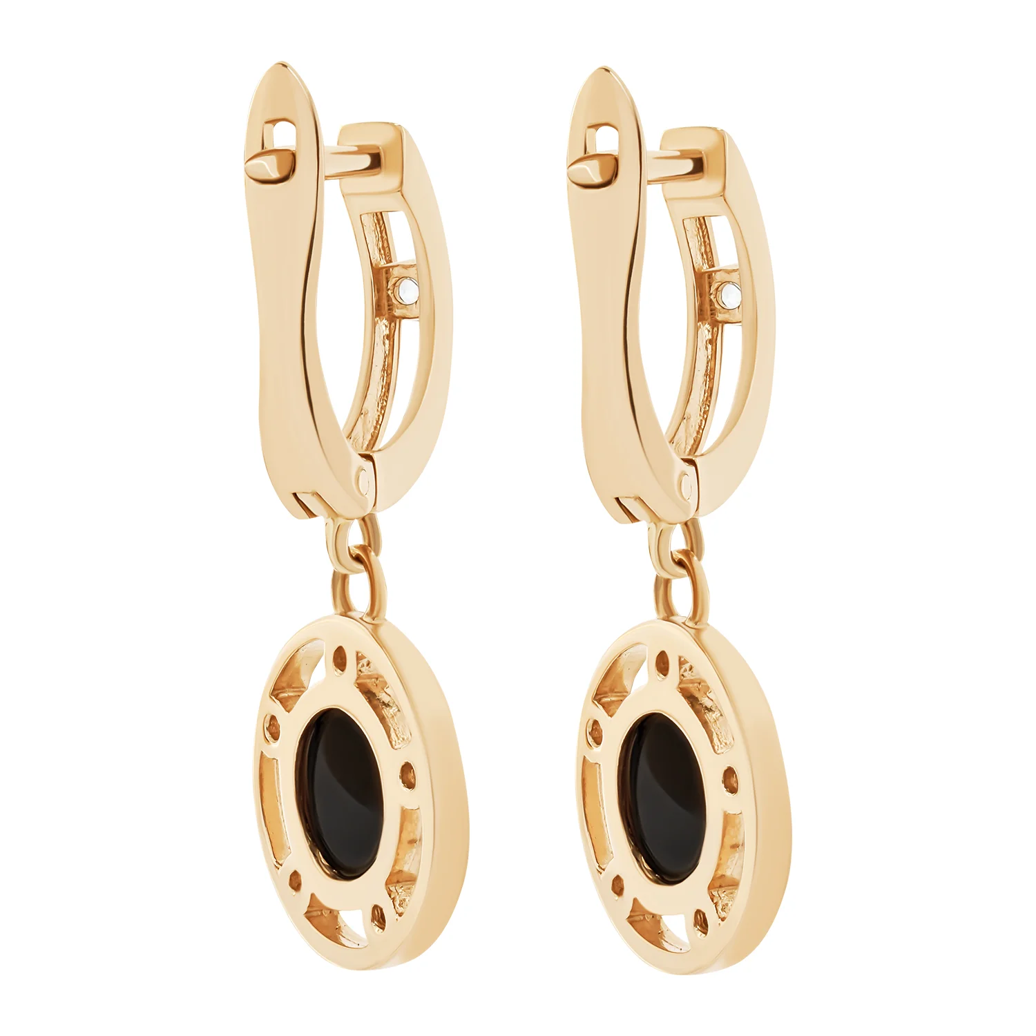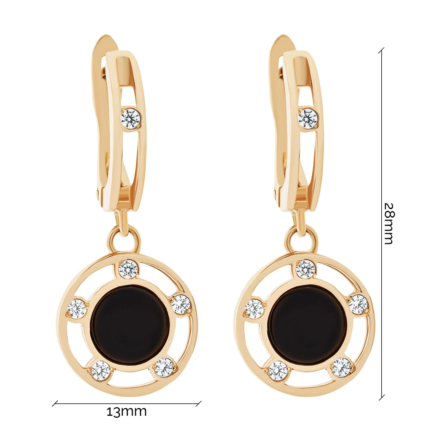 Стильные сережки с подвесами в красном золоте с эмалью и фианитом - 1928138