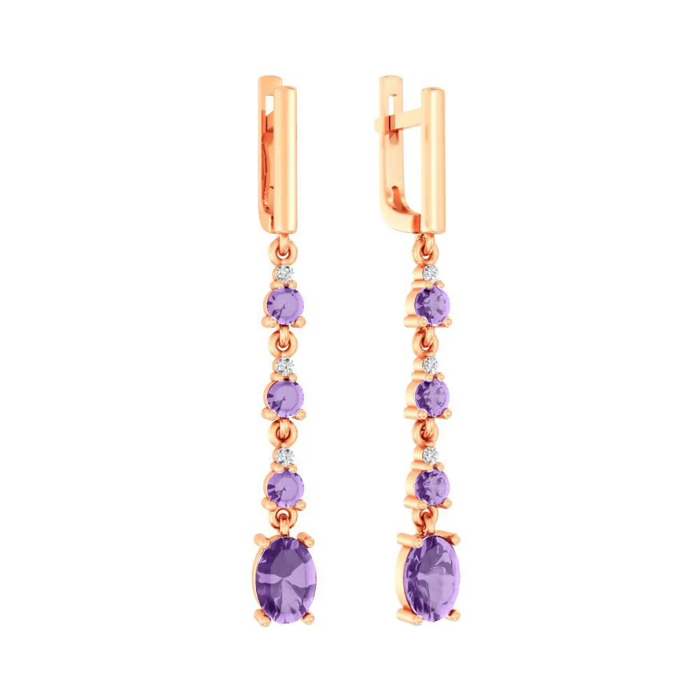 Золотые серьги с подвесами аметистом и фианитами - 1505102