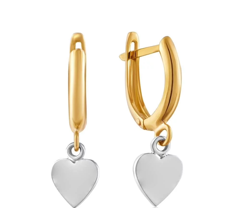 Сережки из комбинированого золота с алмазной гранью и подвесами - 970225