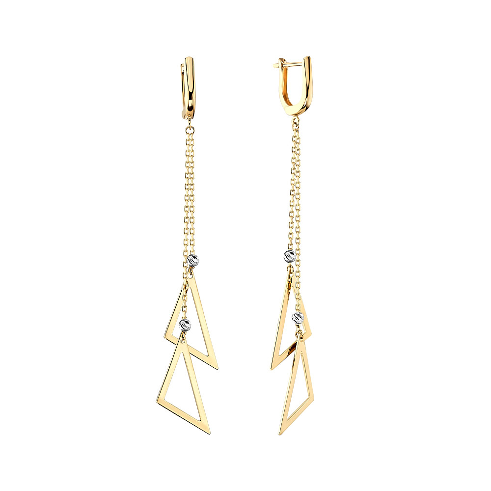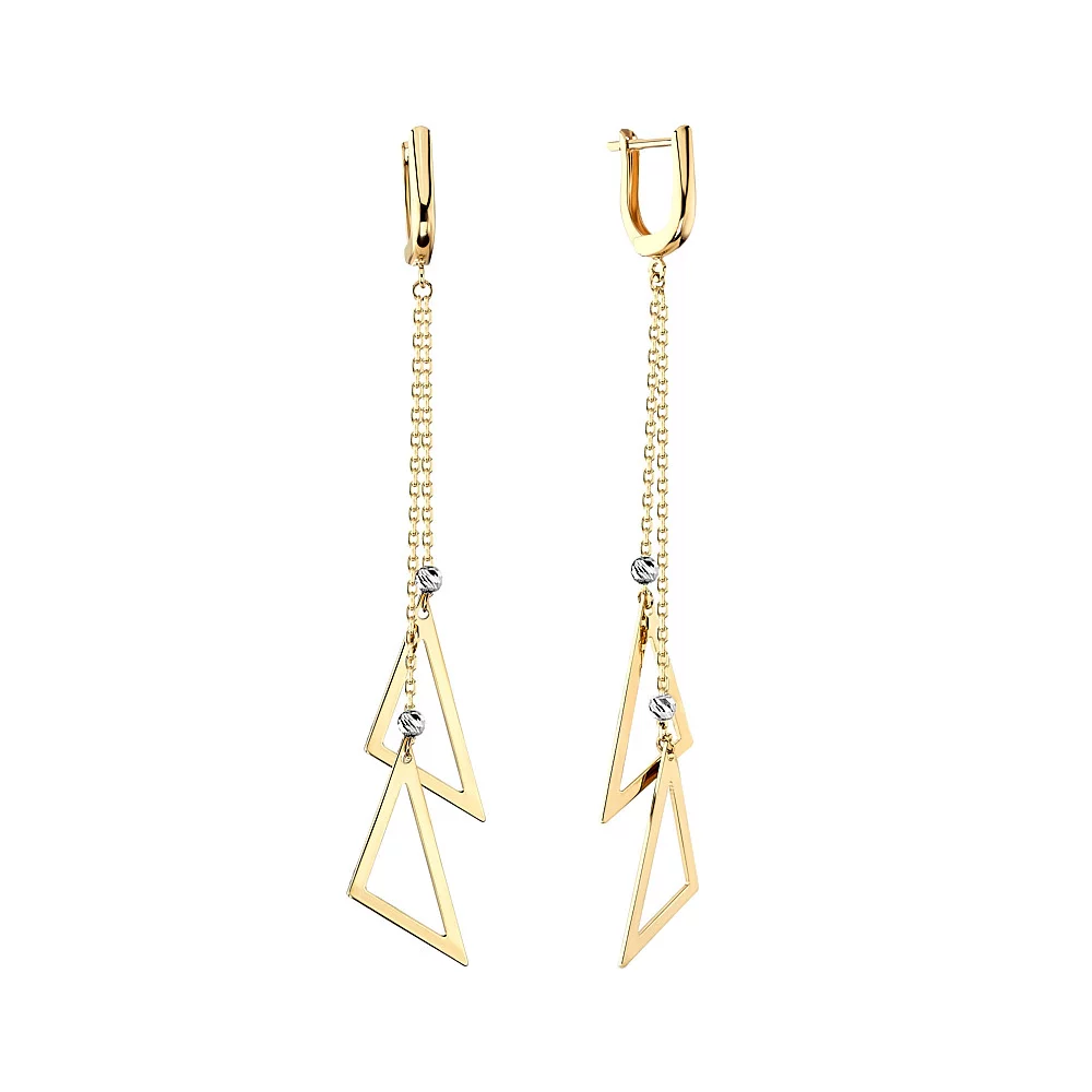 Серьги с подвесами "Треугольники" в комбинированном золоте - 1503522
