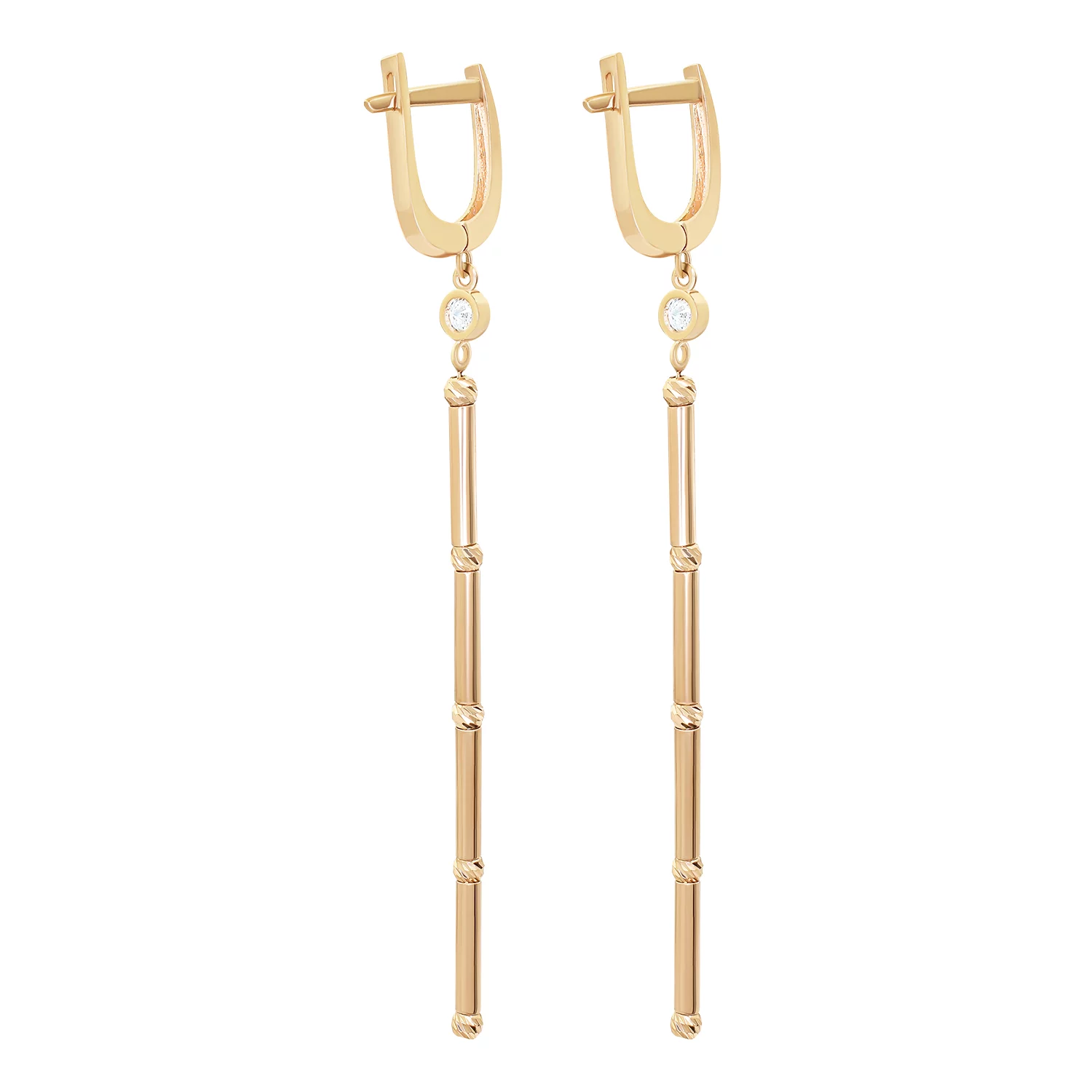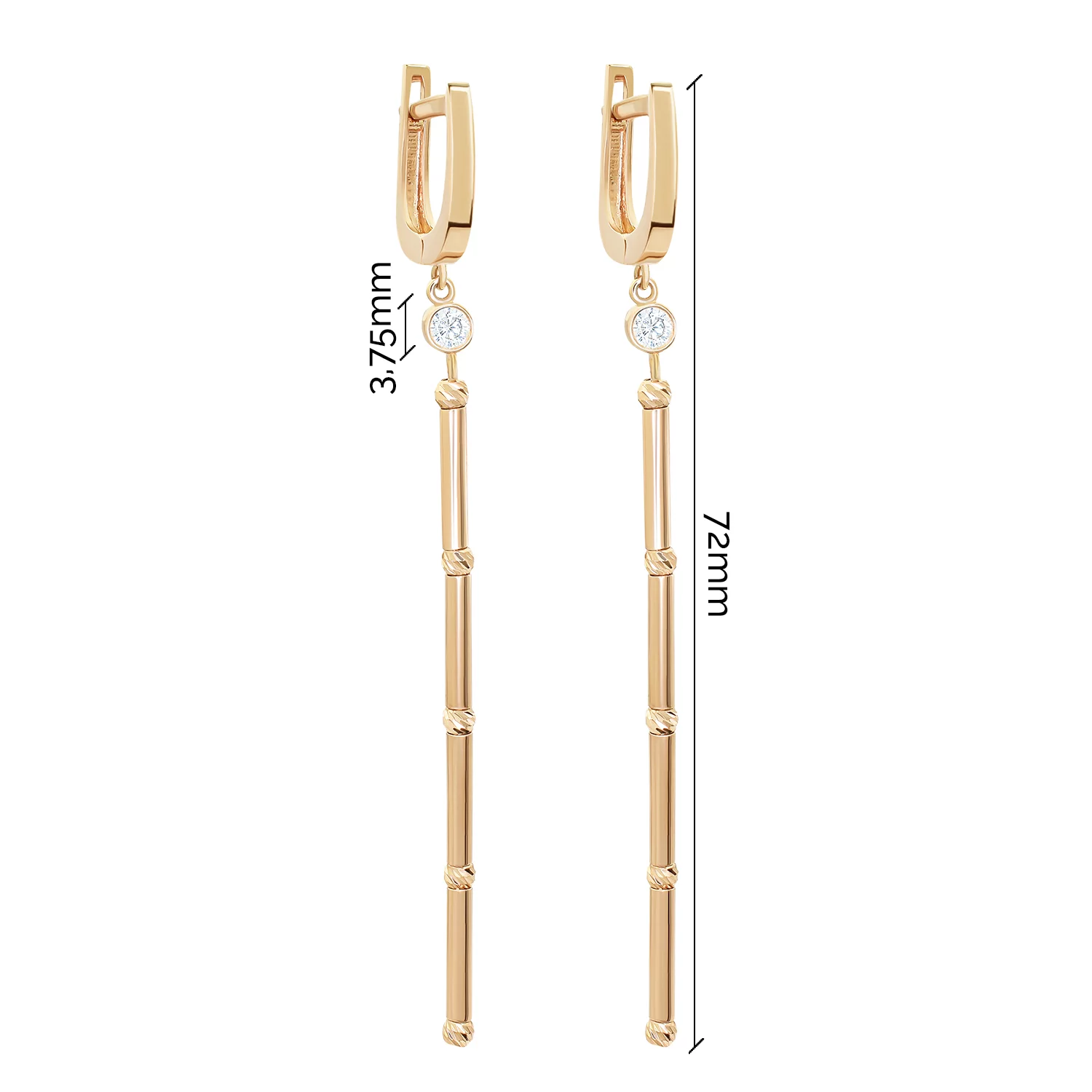 Стильные сережки с подвесами в красном золоте с эмалью и фианитом - 1928138
