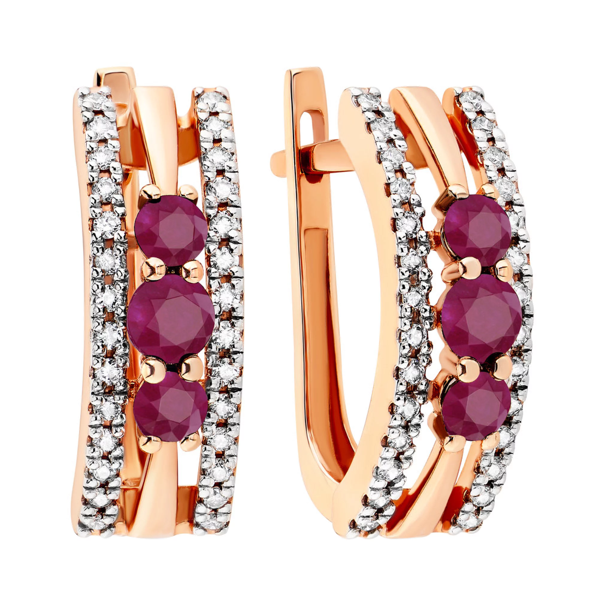 Золотые серьги с рубинами и бриллиантами - 1506237