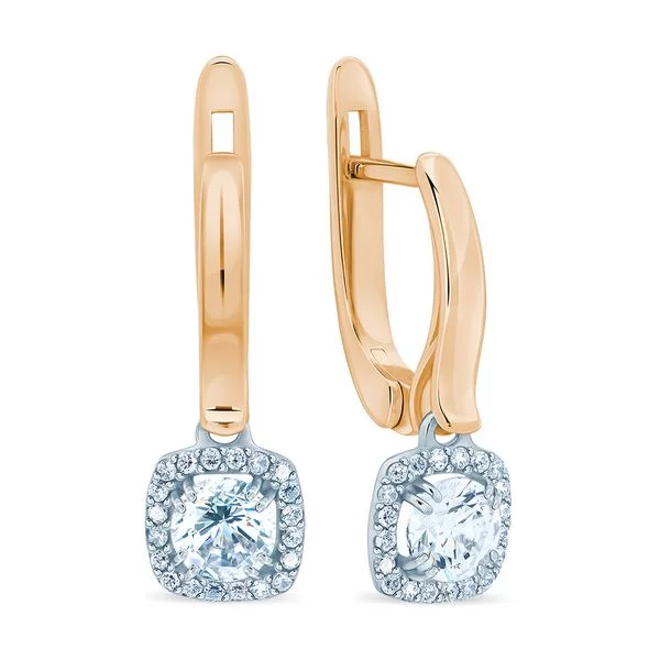 Сережки из красного золота с подвесами с фианитами и жемчужиной - 1690617