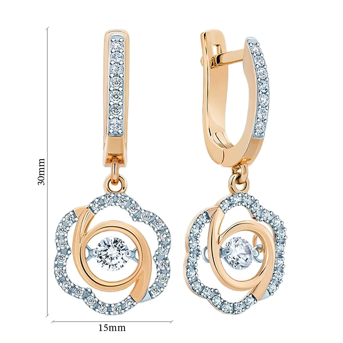 Серьги в красном золоте с фианитом и подвесками спиральной формы - 1589621