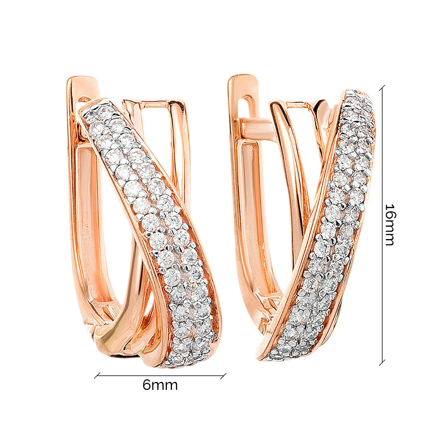 Поклонницам классики придутся по вкусу золотые серьги с цирконием. Основание украшения выполнено в виде изогнутой полосы, инкрустированной россыпью сияющих кристаллов. Оформление выглядит богато и солидно. Состав 585-й пробы обеспечивает готовому изделию повышенную прочность и износостойкость. А содержание в сплаве меди придает металлу приятный теплый оттенок. Английский замок надежно фиксирует сережку в ухе и защищает от случайной потери. Сочетание в модели белого и желтого цветов позволяет комбинировать его с различными вариантами цепочек и браслетов.