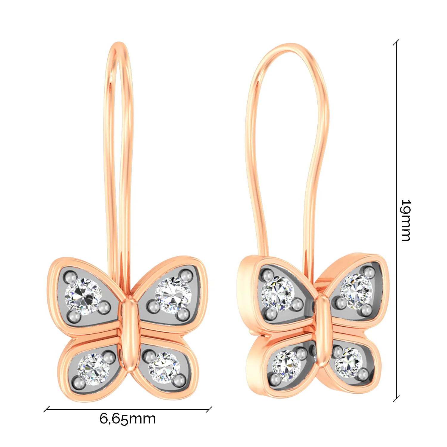 Серьги-гвоздики детские "Бабочка" из красного золота с фианитами - 1798764