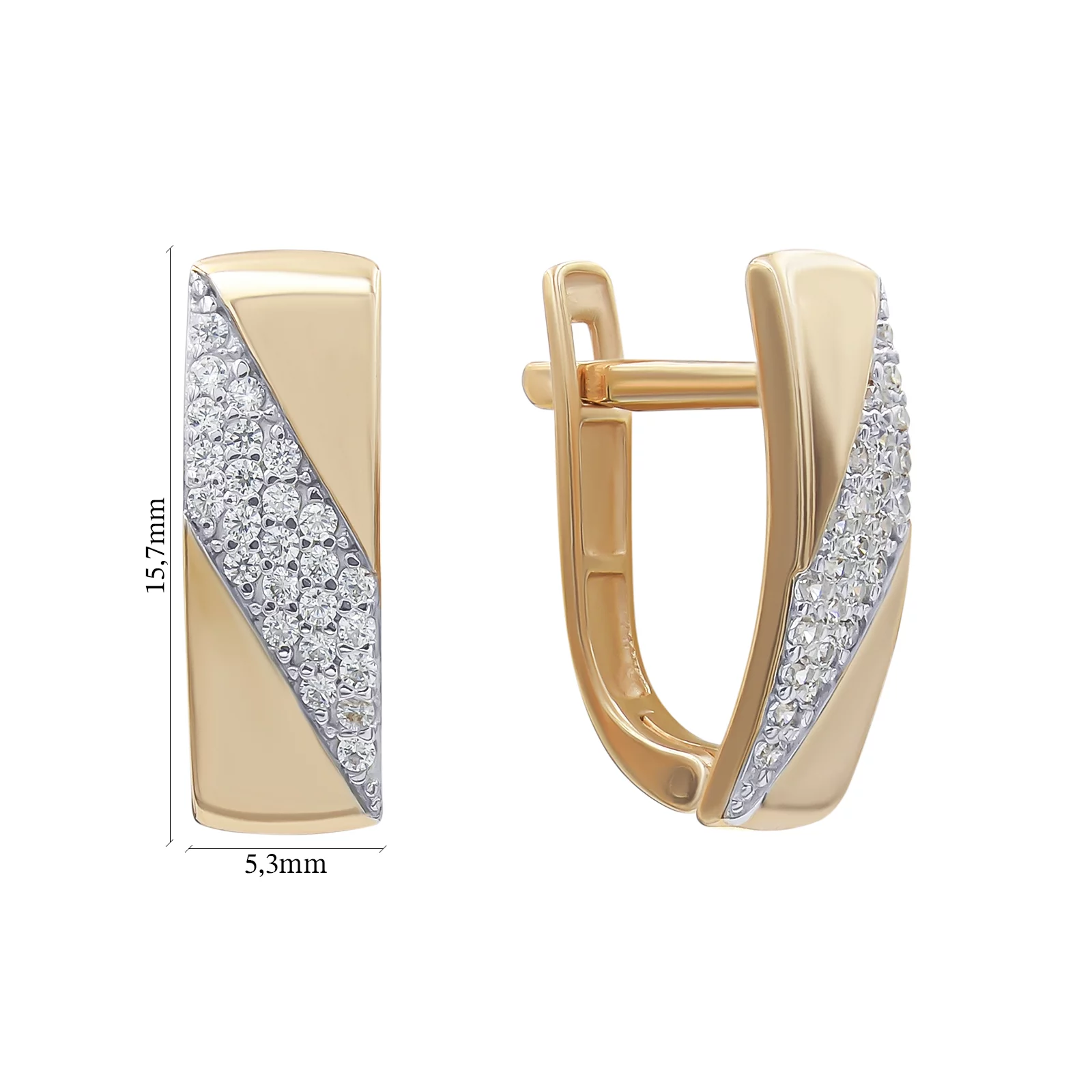 Элегантные сережки-протяжки в минималистичном дизайне из белого золота и фианитами - 1870345