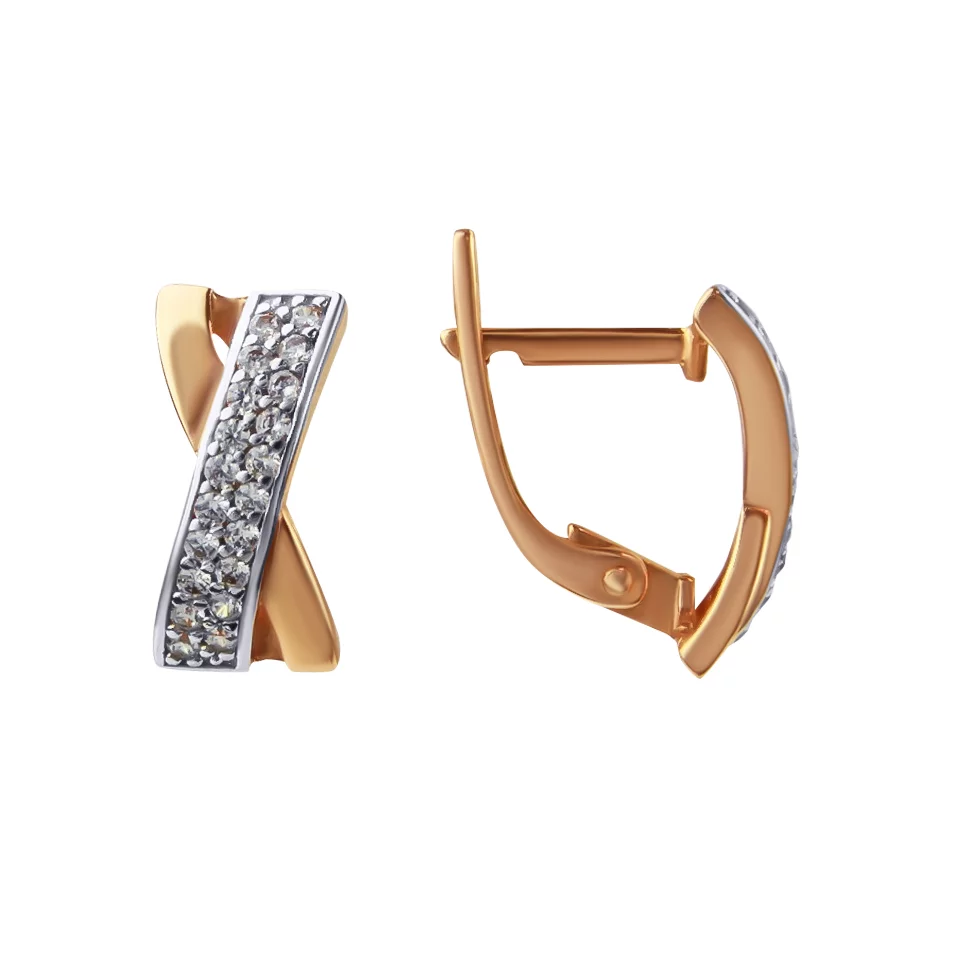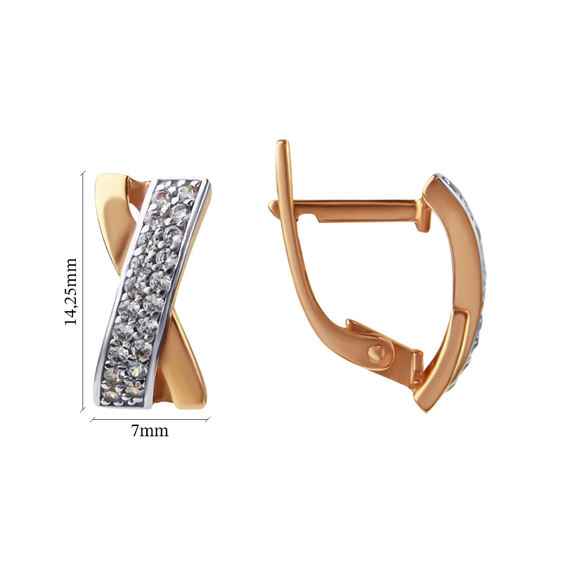 Элегантные сережки-протяжки в минималистичном дизайне из белого золота и фианитами - 1870345