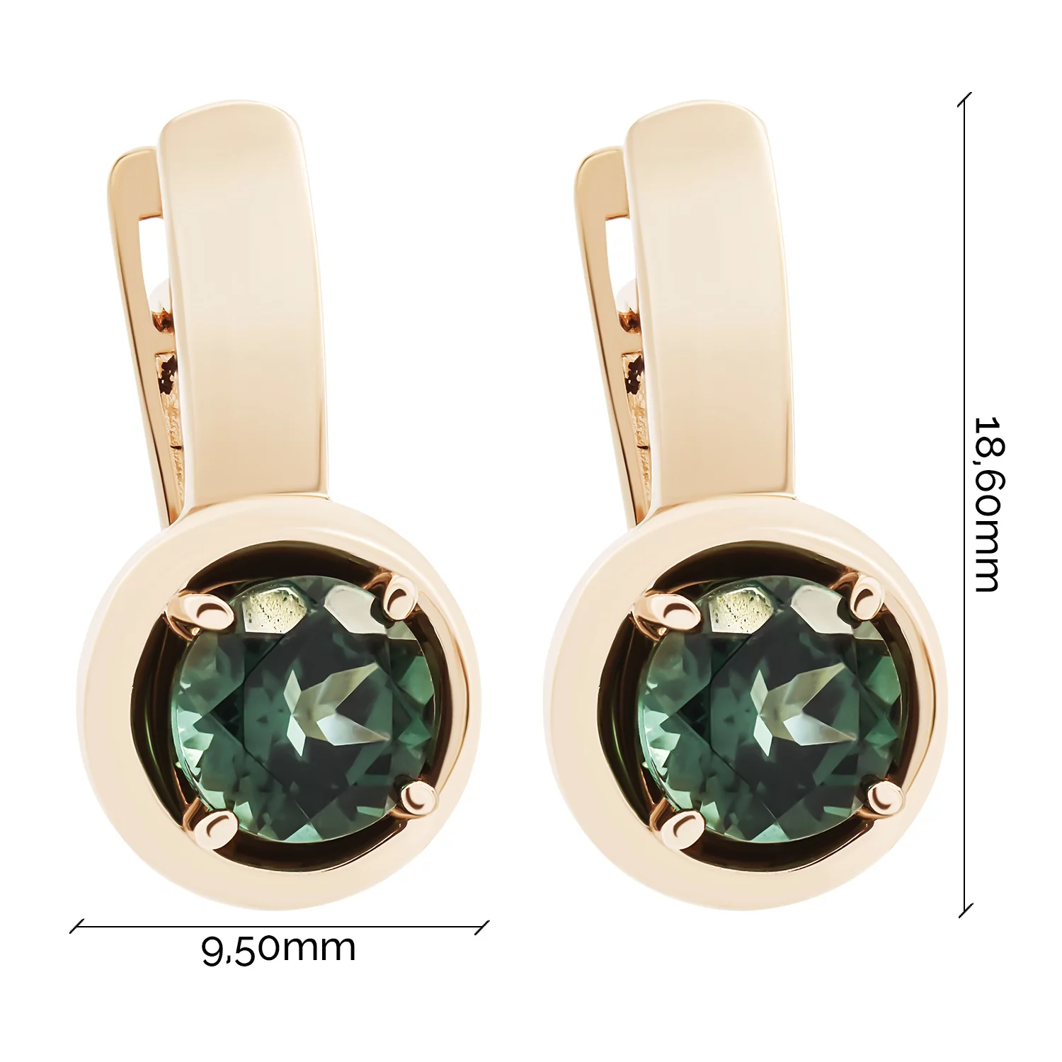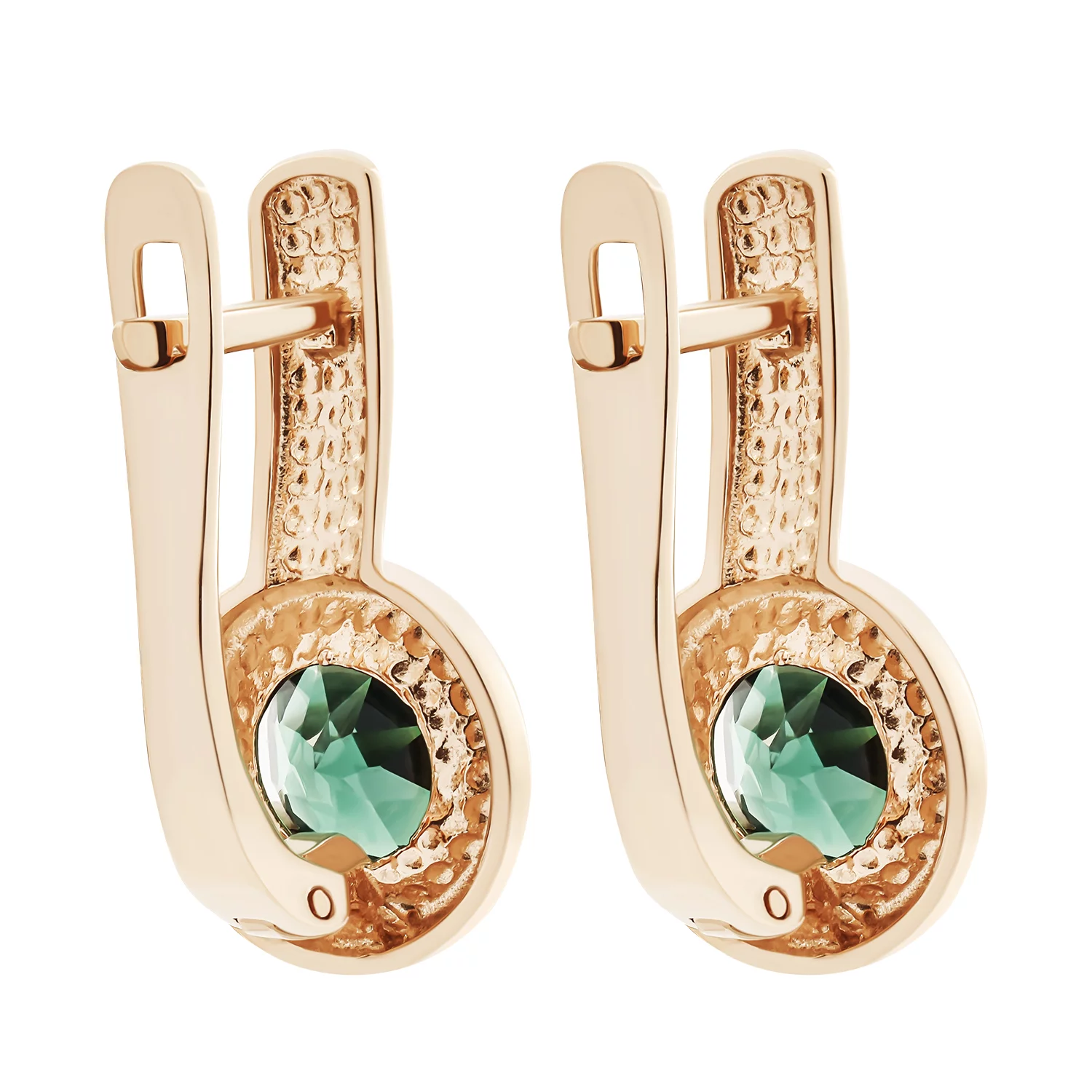 Сережки из красного золота с подвесным турмалином и фианитами - 1687879