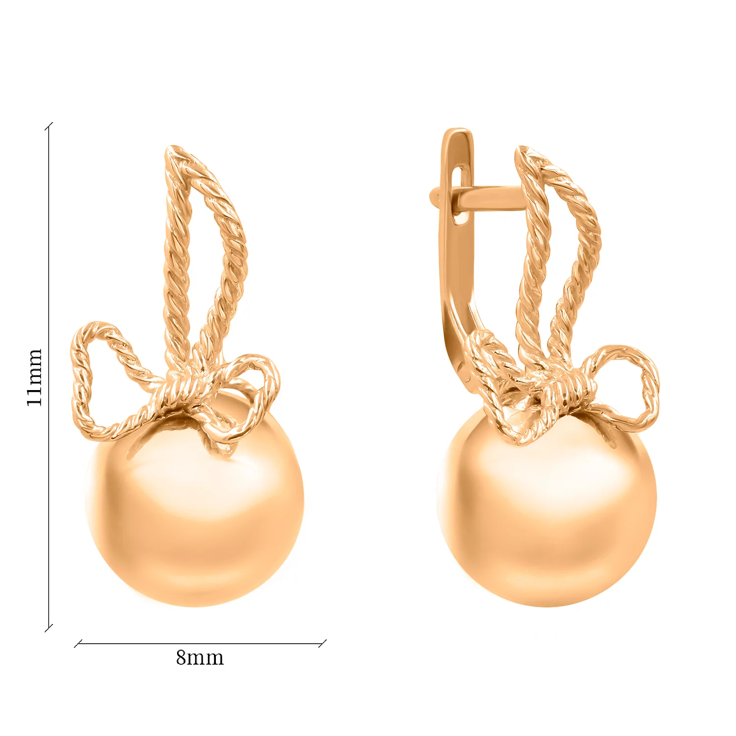 Серьги "Шар и Бантик" в красном золоте - 1435297