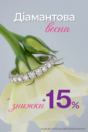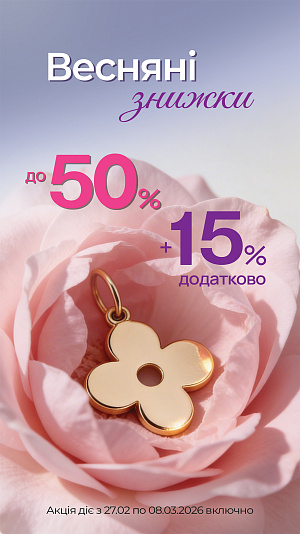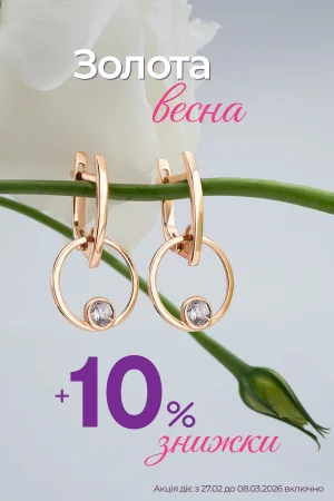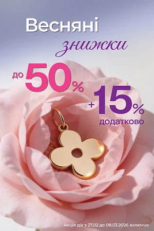 Щоразу при купівлі товарів у магазинах ювелірних прикрас забезпечена знижка 5%. Бонуси не нараховуються на подарункові сертифікати та акційні позиції.