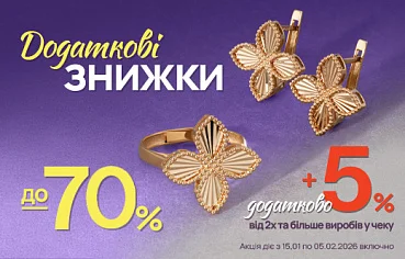 Акція «Додаткові знижки»* діятиме з 15 січня по 5 лютого 2026 року** включно. Вона передбачає додаткові знижки за умови придбання 2-х і більше золотих, срібних виробів чи ікон в одному чеку на наступних умовах: